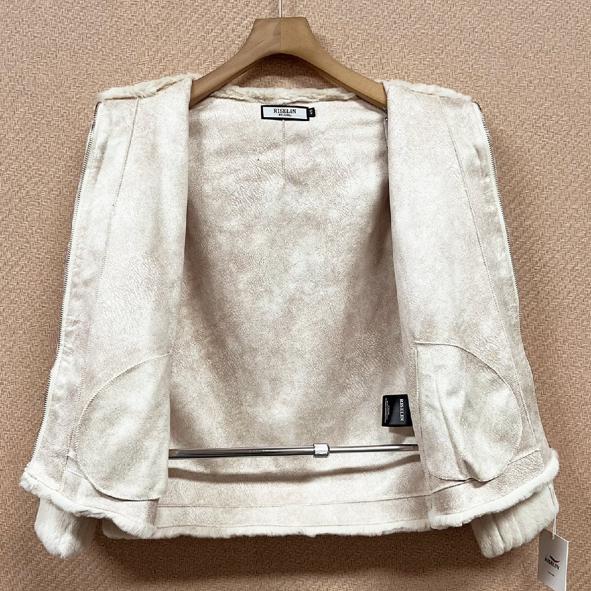 人気ヨーロッパ製※定価8万◆ブルガリア発※RISELIN ファーコート ミンク混 もこもこ 暖かい 防寒 無地 上品 毛皮ジャケット アウター 普段着 M/46サイズ