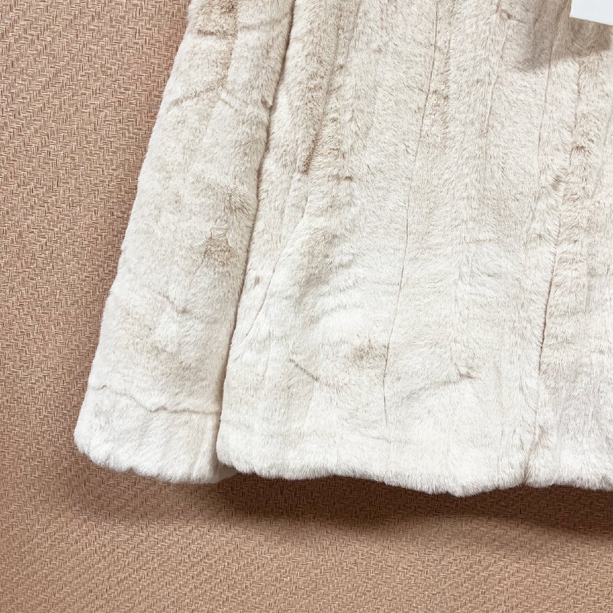 上質なミンク混/カシミヤ混紡素材を使用しています。ミンクのしっとりとした艶やかな毛並みと、カシミヤのふんわり柔らかな肌触りを兼ね備えています。ずっと触っていたくなるほどに肌ざわりがよくしっかりと目の詰まったボリュームのある生地は、寒い季節に大活躍間違いなし。