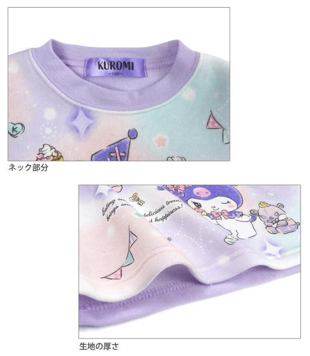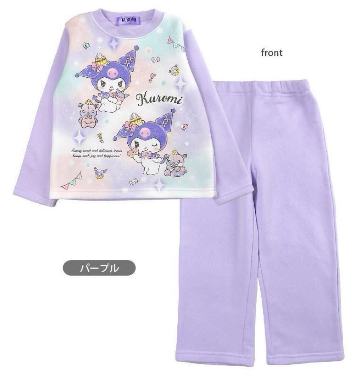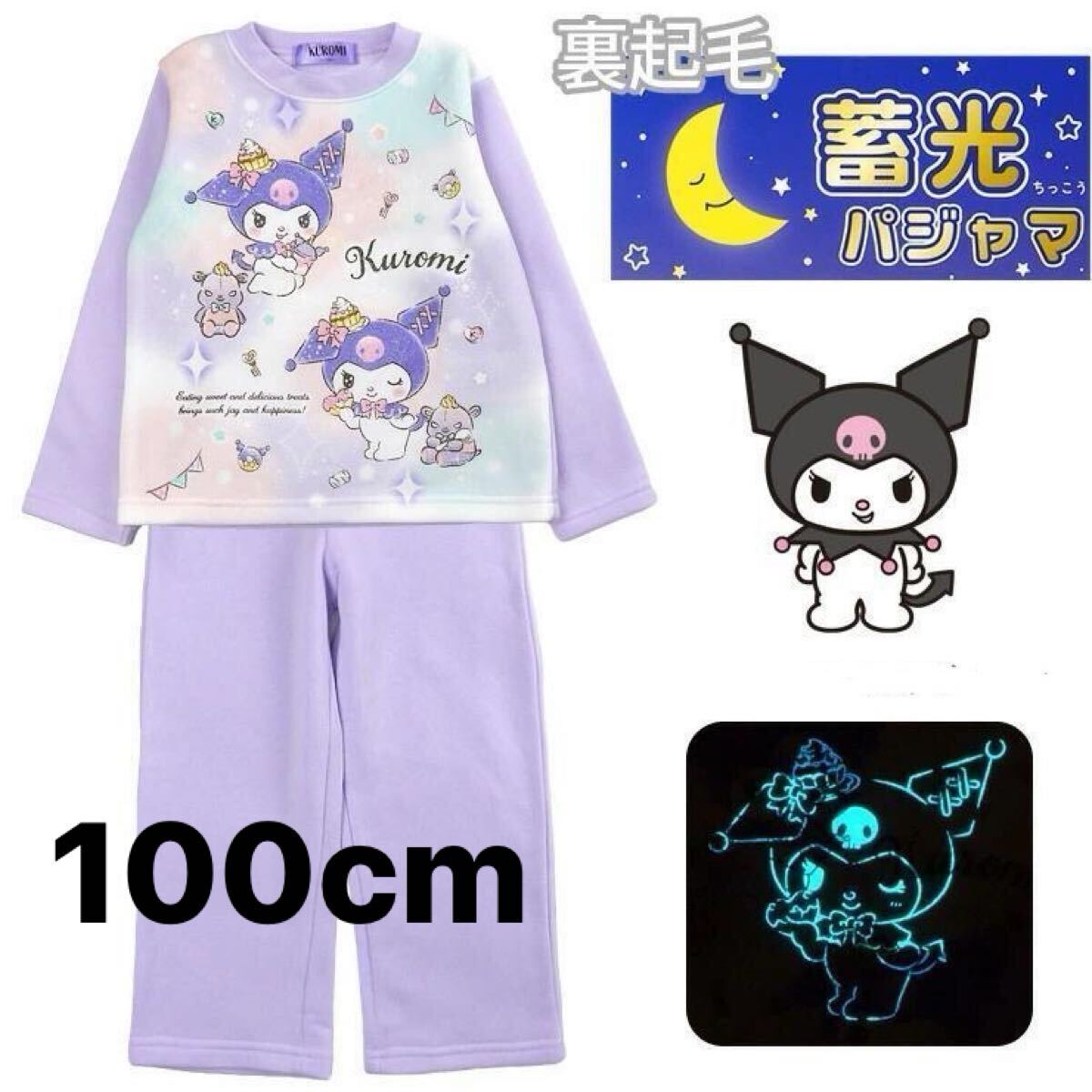 新品64556 100cm くろみ クロミ ガールズ パープル 裏起毛 長袖光るパジャマ あったか 保温 蓄光 ラメ 女子 サンリオ