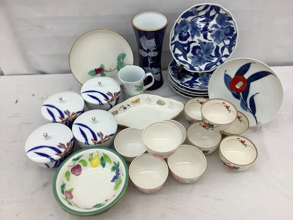 香蘭社 陶器まとめ/花瓶/湯呑/皿/胡蝶蘭/果樹園/干支他 皿立ては備品/ACB 中古品