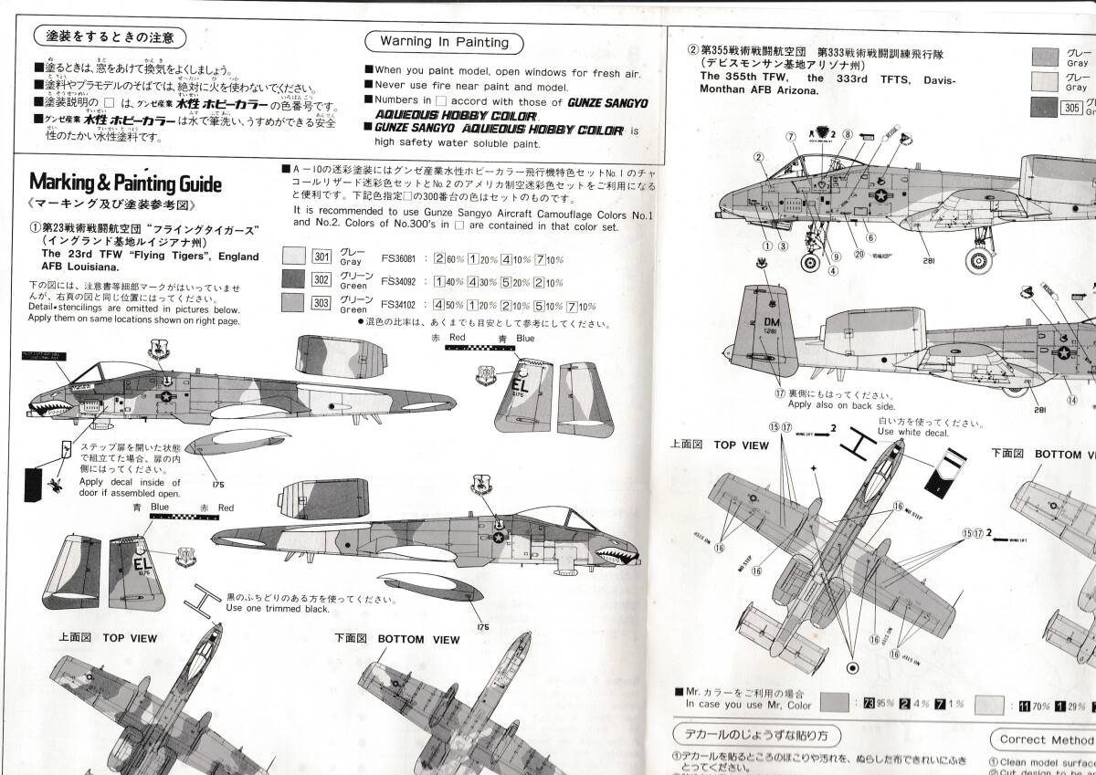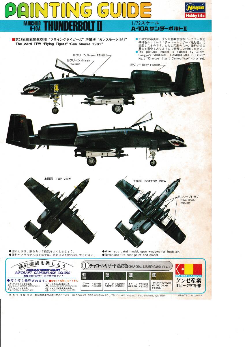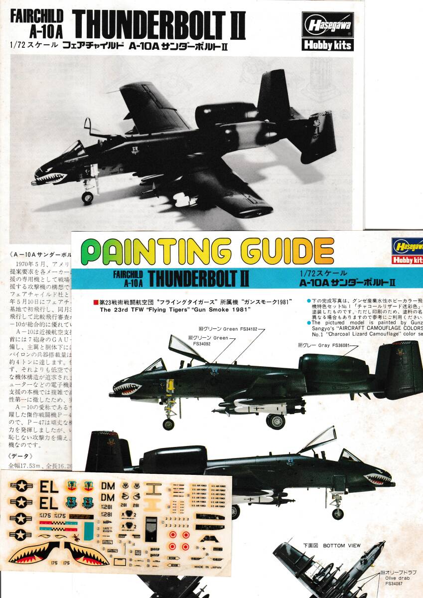 ★即決あり★1/72ハセガワ デカール,カラーガイド&説明書セット フェアチャイルドA-10AサンダーボルトII ‘ 23TFWフライングタイガーズ’