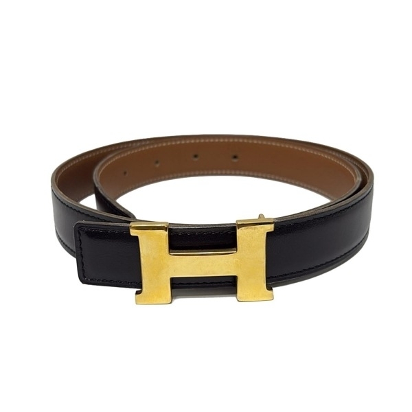 エルメス HERMES 70 Hベルト 黒×ゴールド ゴールド金具 〇Z ベルト