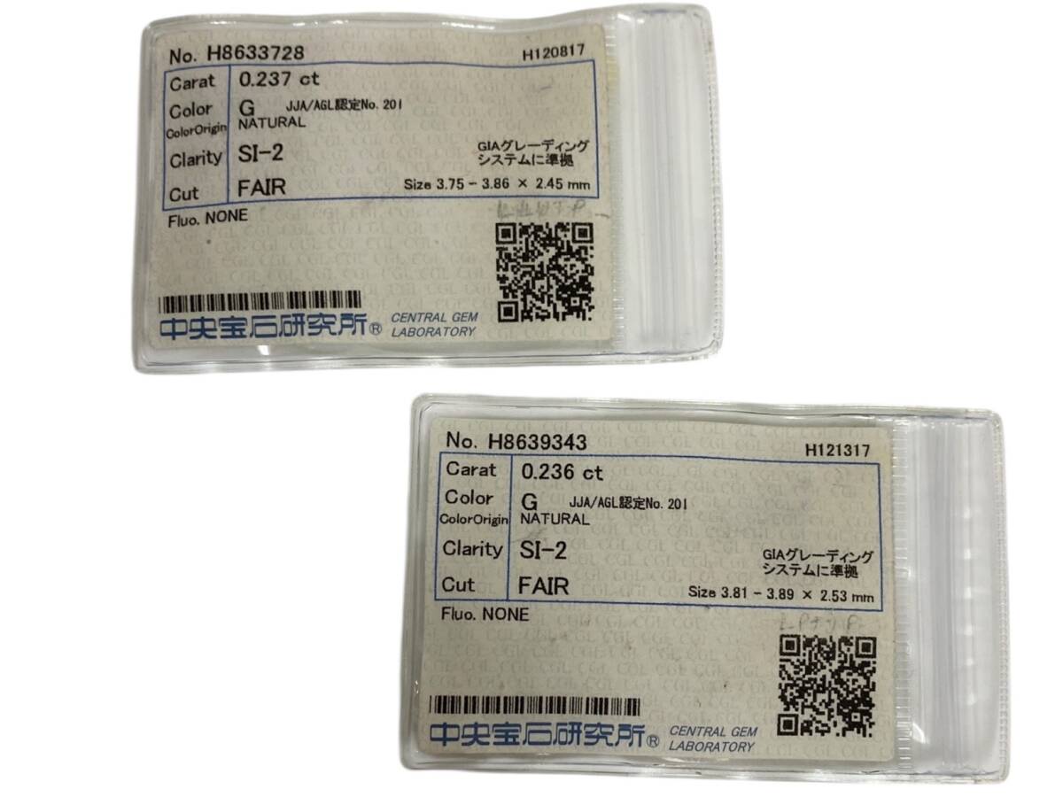 お買い得!中宝研付き◎プラチナ900 ダイヤモンド各0.237ct&0.236ct ピアス 一粒ダイヤピアス G/SI-2/FAIR プラチナダイヤモンドピアス
