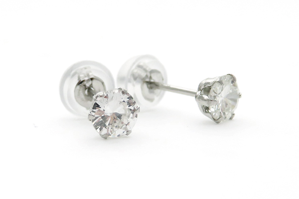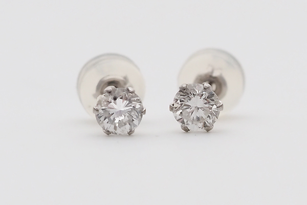 定番の6つ爪枠にセッティングされた、 一粒ダイヤピアスです!!