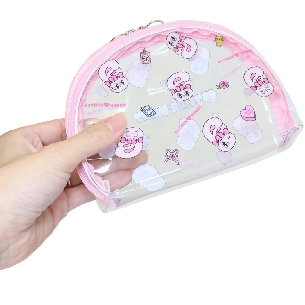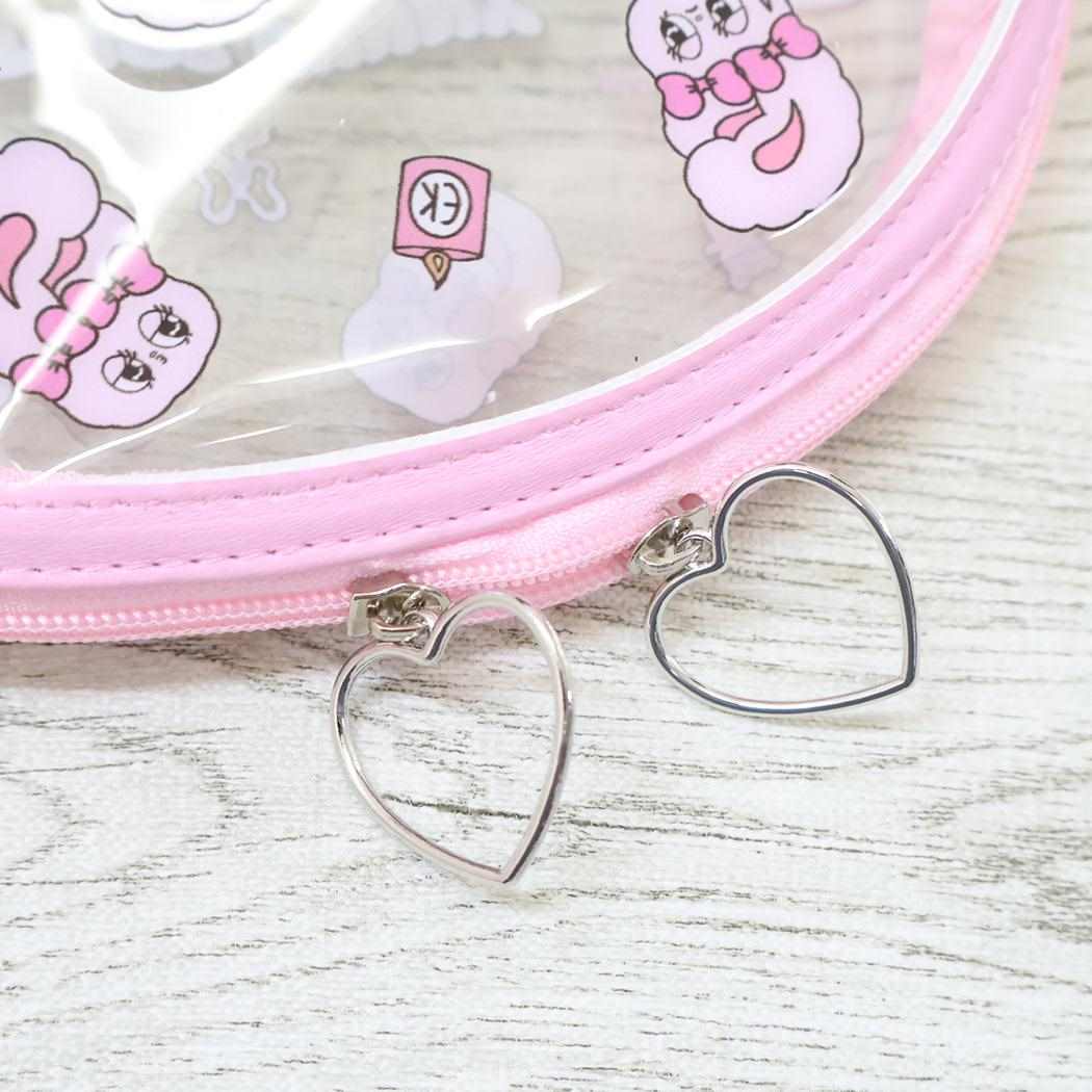 クリアでかわいいシェル型ポーチ。ハートの引き手がポイント! EstherKim氏がデザインしたPOPでキッチュなウサギのキャラクター[エスターバニー]グッズにまたまた可愛いnewアイテム登場こちらは持ち歩きにちょうどいいサイズの[クリアシェルポーチ]ハートの引き手がポイントですかわいいポーチいろいろあるのでお気に入りをみつけてくださいサイズ:約160x120x50mm素材:PVC