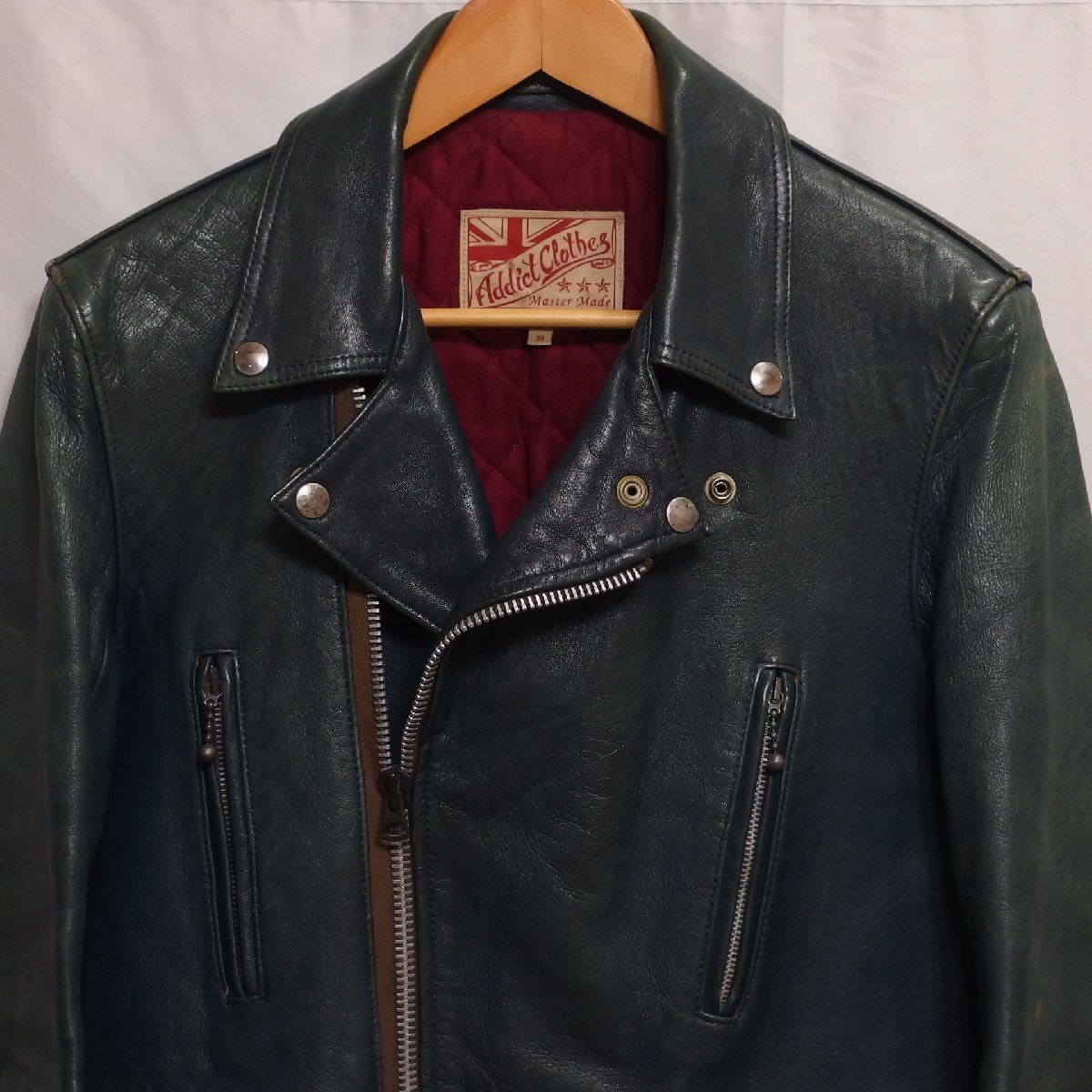 ADDICT CLOTHES◆アディクトクローズ ダブルライダースジャケット(ネイビー)羊革 レザージャケット サイズ38・難有り・現状渡し品◆USED | |||