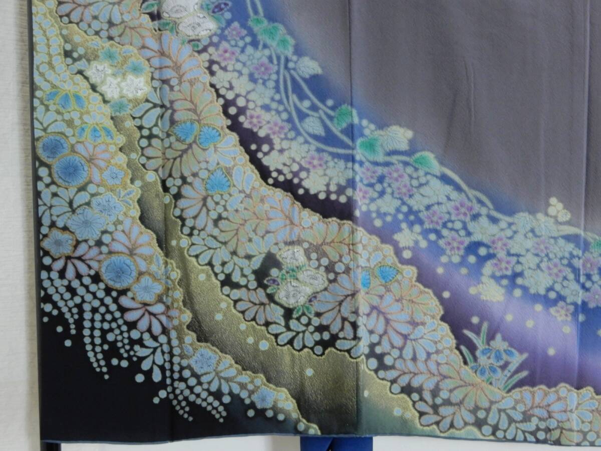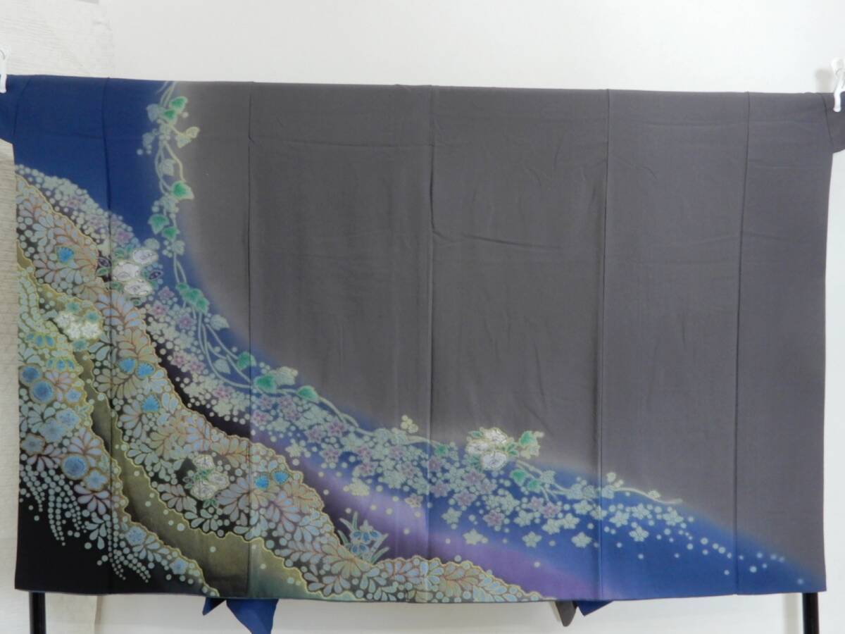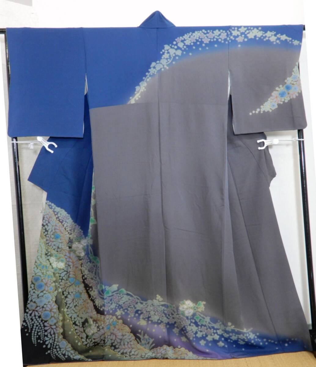 <銀の斧>正絹・辻ヶ花袷訪問着着物・本絞り染め・シックカラー
