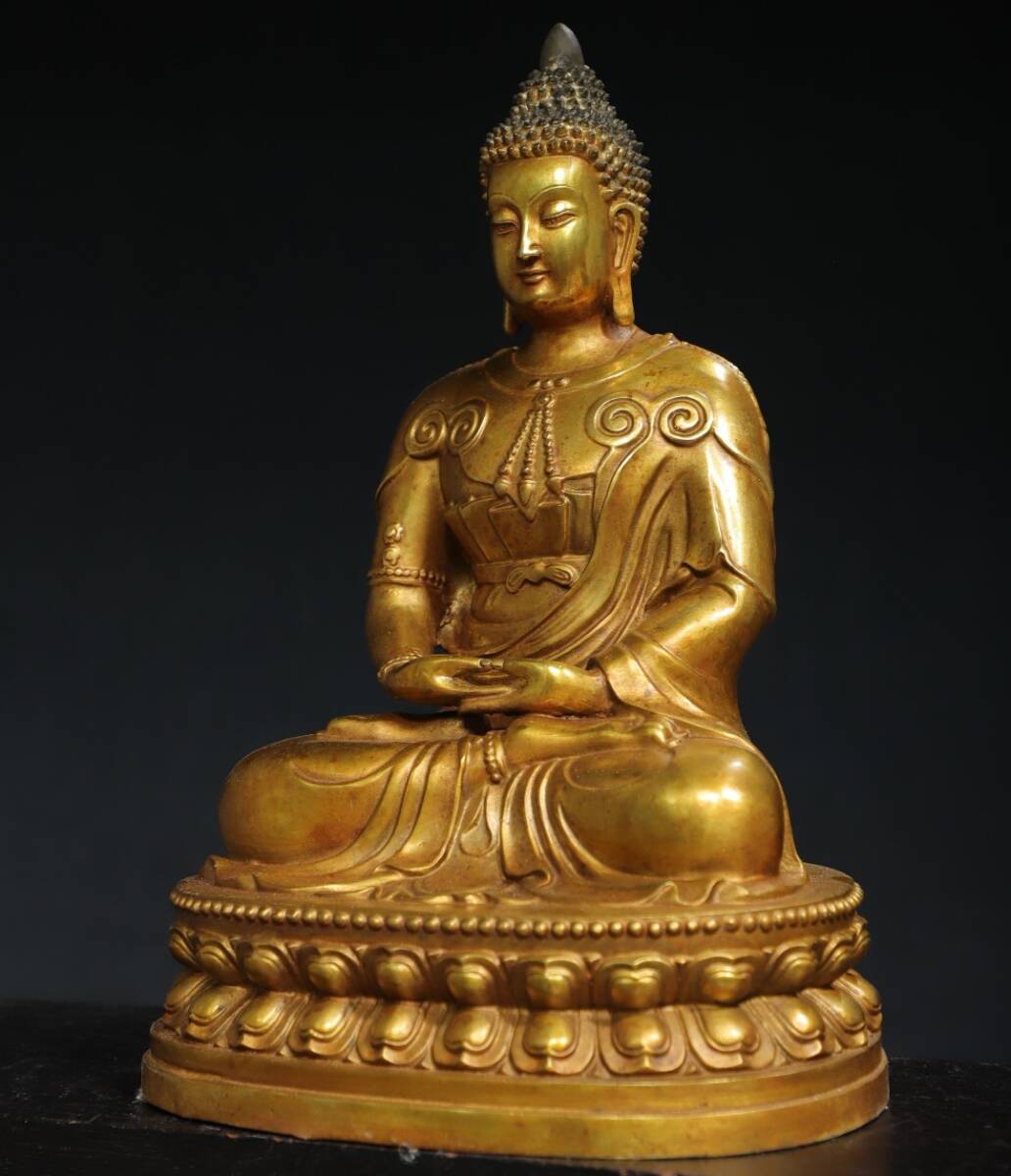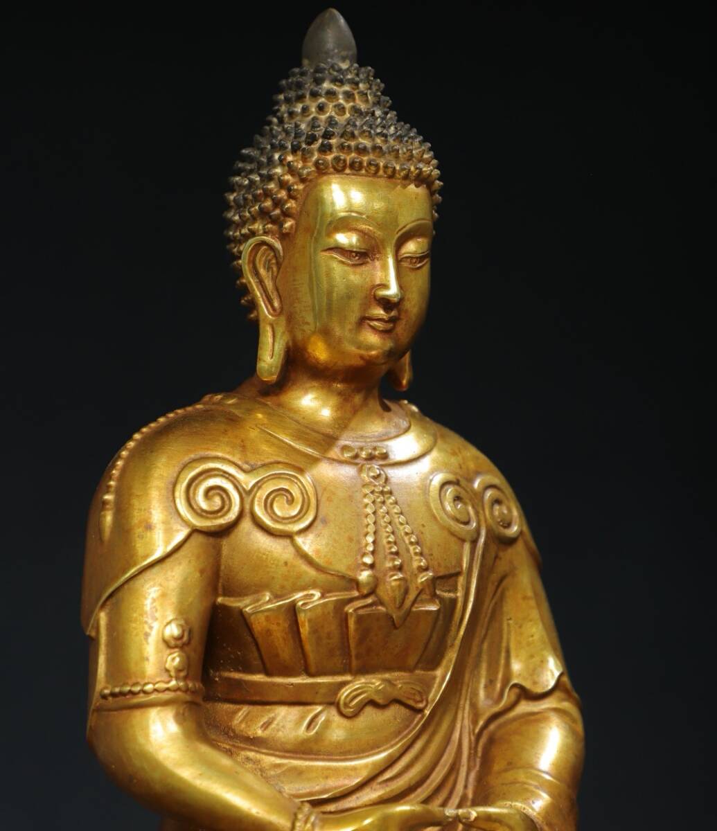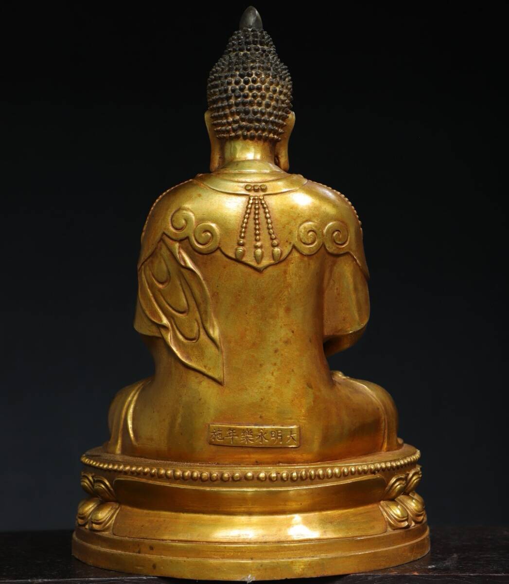 唐物 大明 永樂年製 銅塗金 釋迦牟尼 仏像 奉納されていた 供養品 銅製 銅器 極細工 古美術品 中国古玩 骨董品 D610