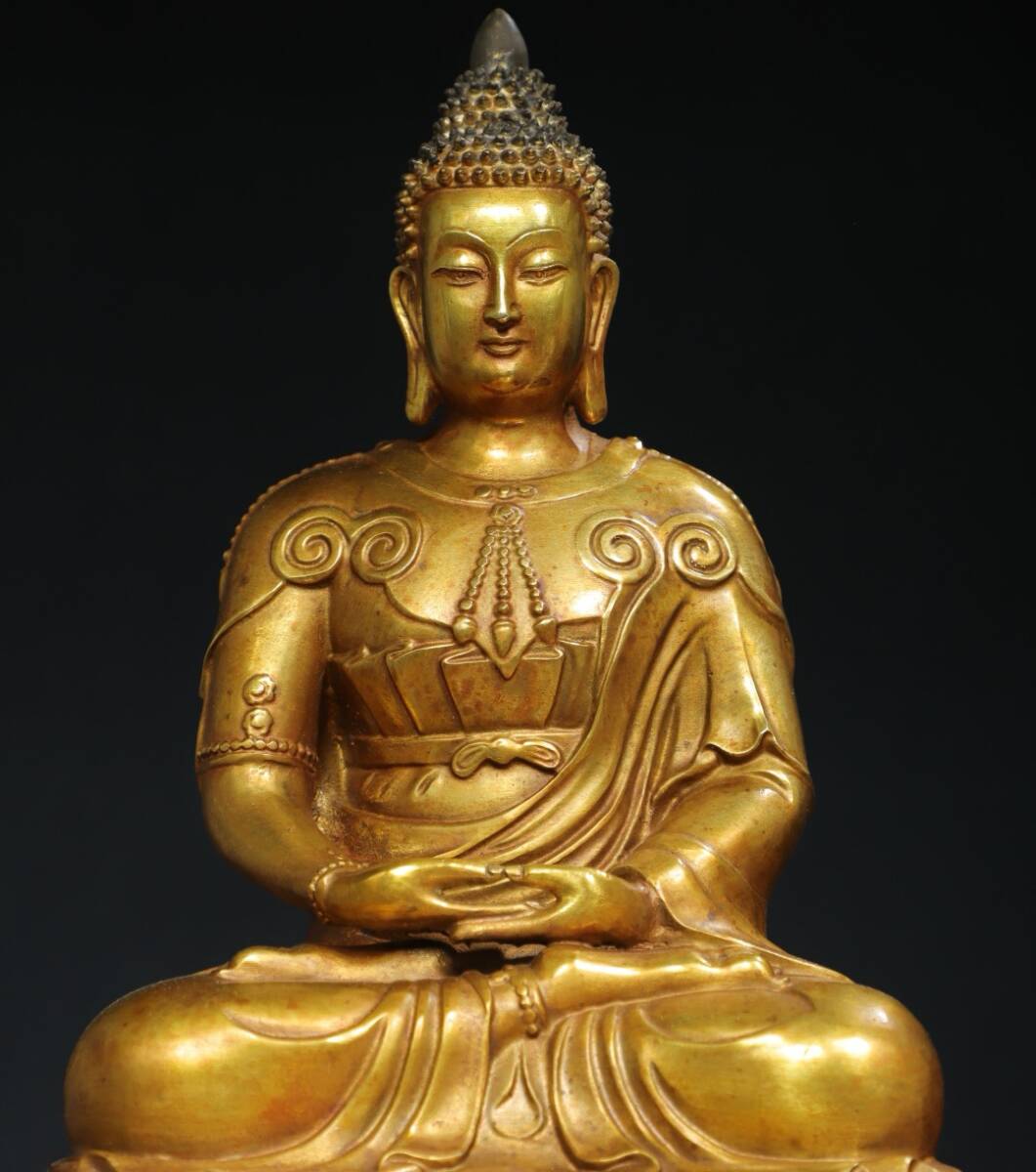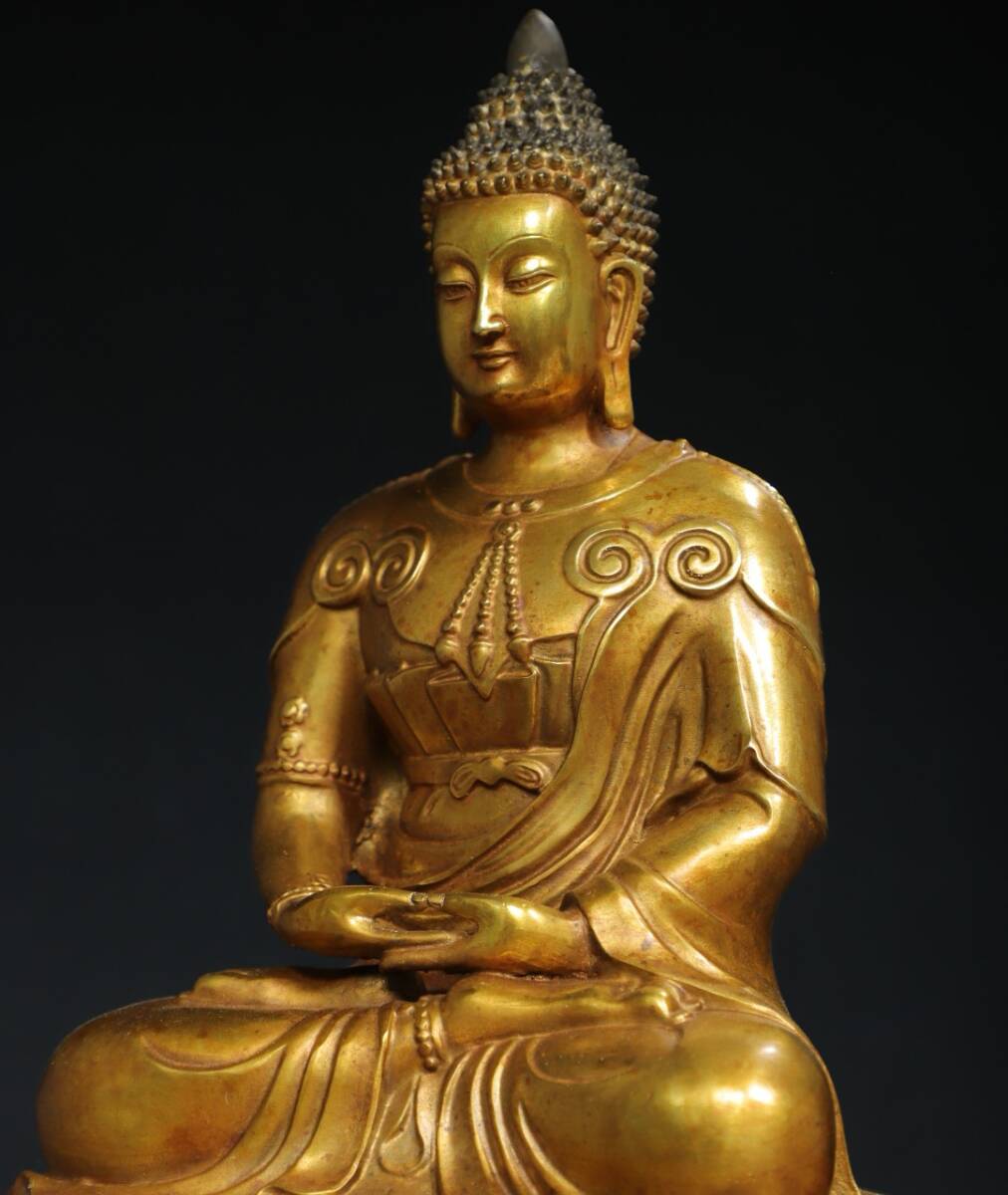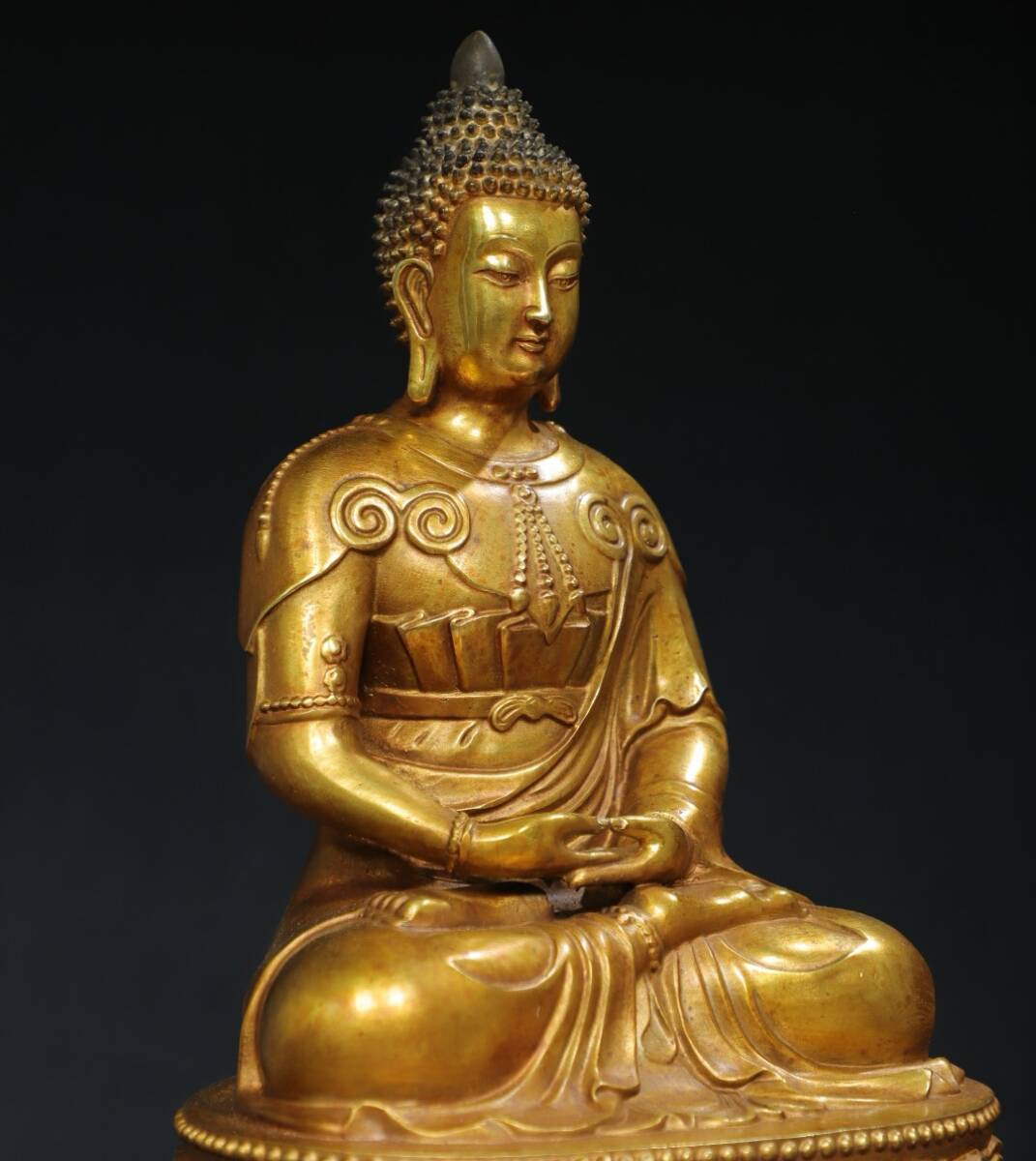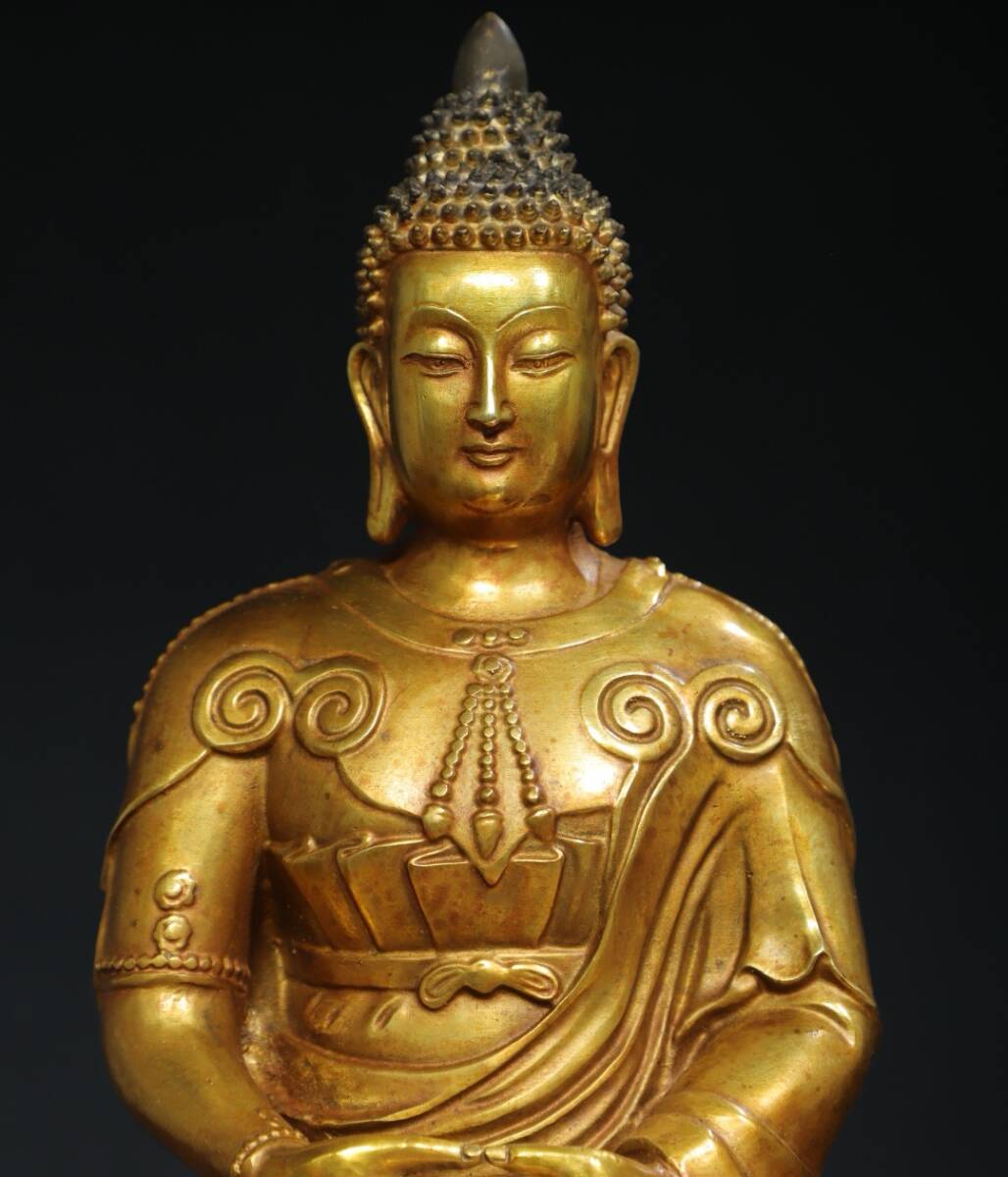 唐物 大明 永樂年製 銅塗金 釋迦牟尼 仏像 奉納されていた 供養品 銅製 銅器 極細工 古美術品 中国古玩 骨董品 D610