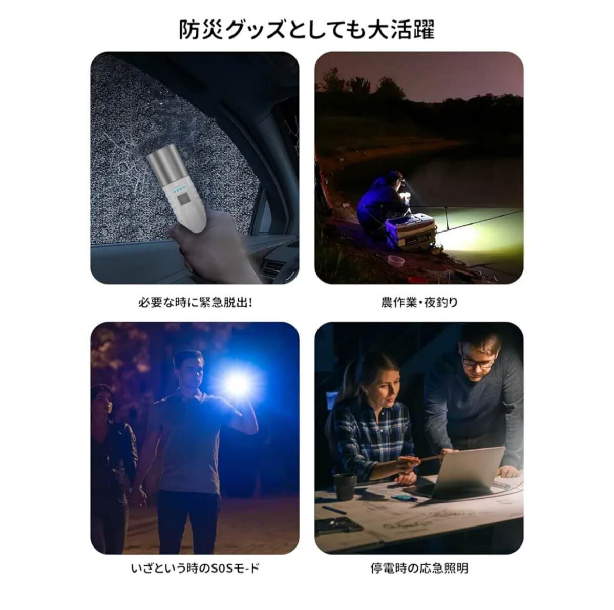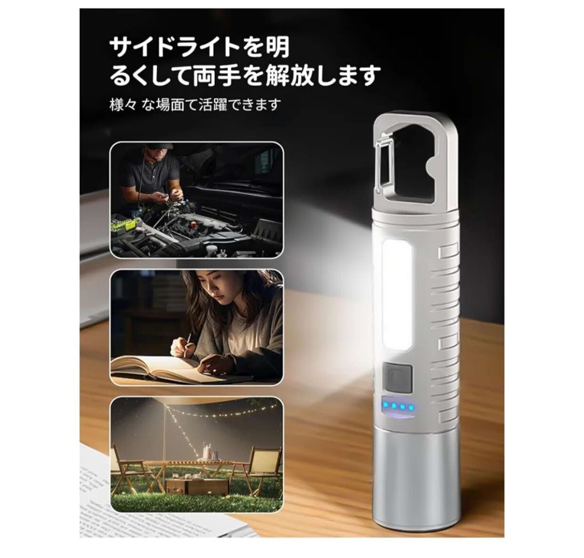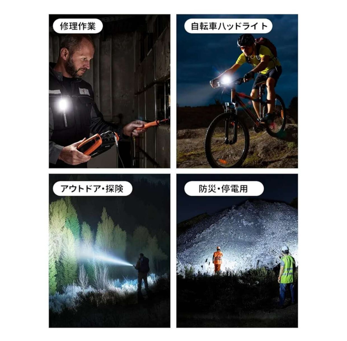 『多機能で強力な懐中電灯』高輝度XPE LEDメインライト+180度広角投光器COBサイドライトが装備されており、また懐中電灯の尾にはフックが付いていて携帯性があります究極の費用対効果と実用性を完璧に兼ね備えています。そして耐久性の高い素材。
