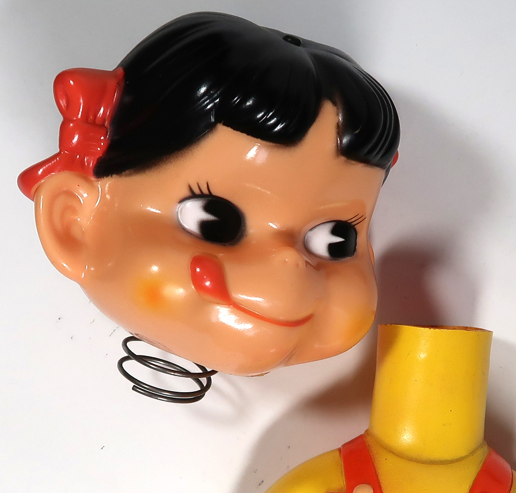 出品は画像の物のみです。古い物ですし飾っていた物ですので所々に汚れや擦れは有ります。ある程度は汚れを拭きました。首が取れてしまいます。画像をご覧ください。台座のステッカーに剥がれや破れがあります。全高は32cmくらいです。お取り引き後はいかなる理由がありましても返品はできませんしクレームはお受け出来ません。