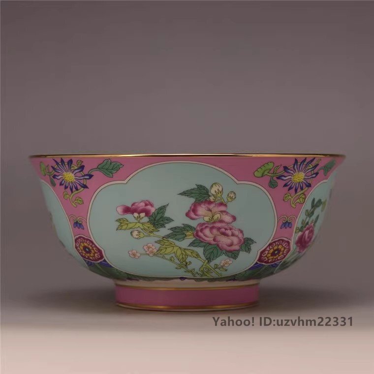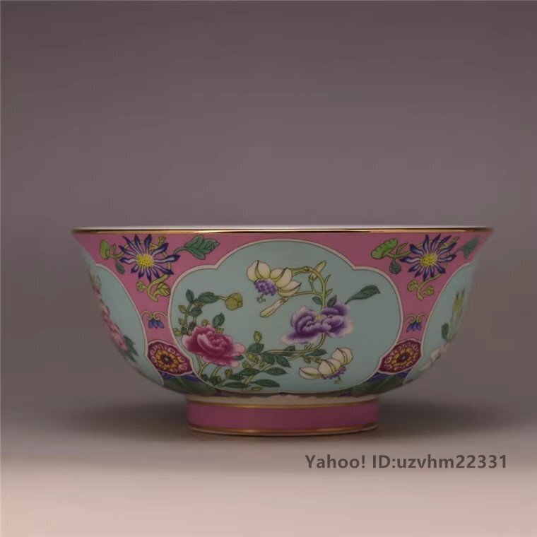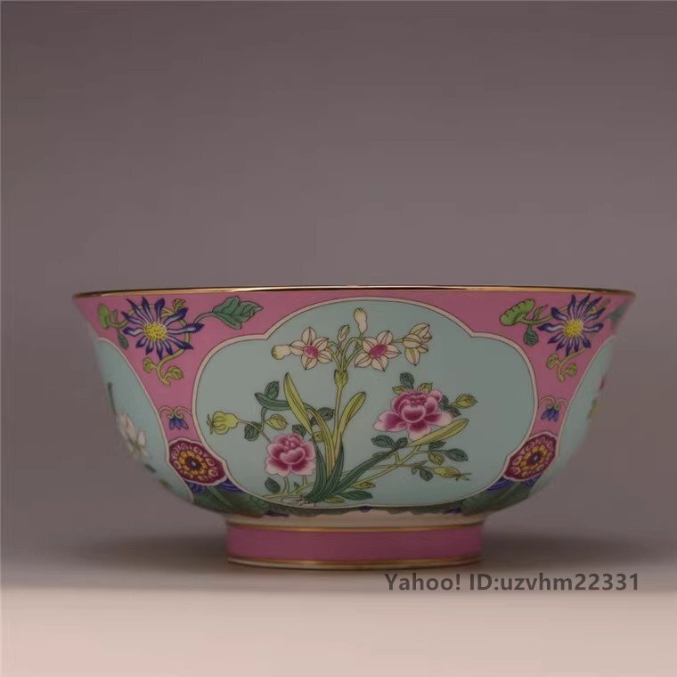 中国美術品 工芸品 お椀 花柄 粉彩 観賞 磁器 陶磁器 観賞 置物