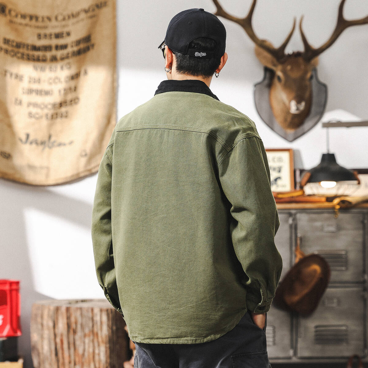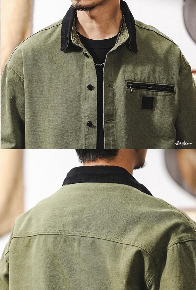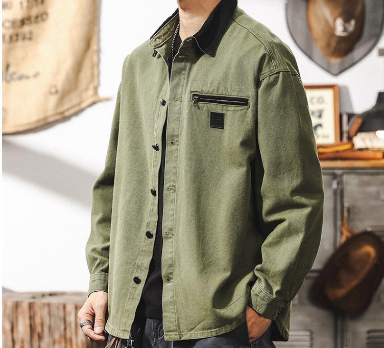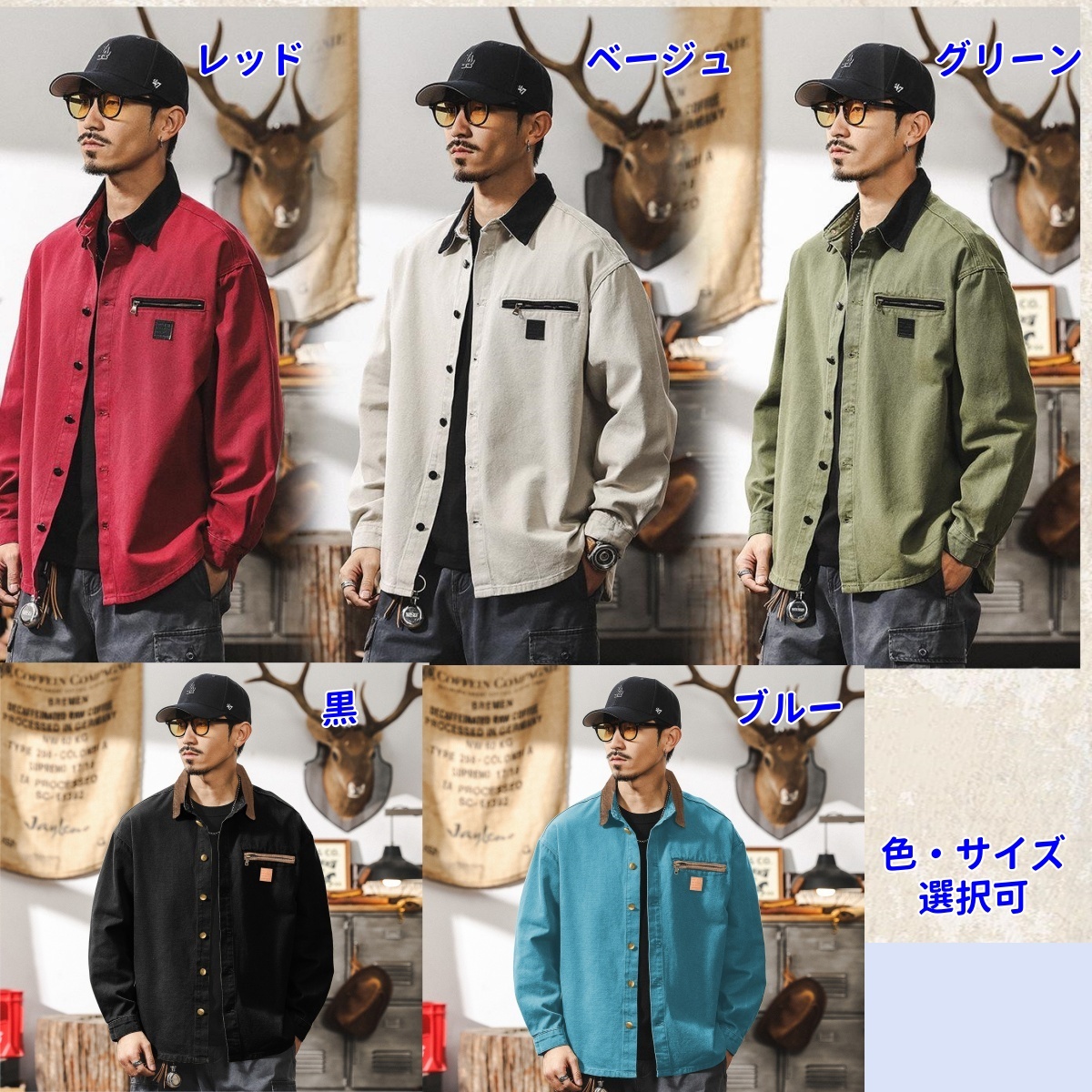 カーゴシャツ メンズ・新品 長袖シャツ シャツジャケット ワークシャツ ヴィンテージ 春秋 トップス ブルゾン【1702】グリーン M
