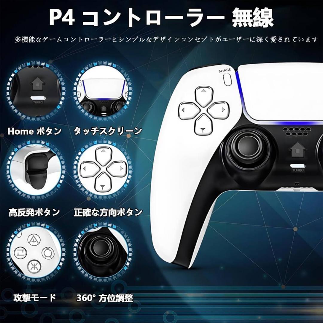 【P4コントローラー】PS4ワイヤレスコントローラーはPs3/Ps4/Ps4 Pro/Ps4 Slim/iOS/Android/PC(Windows7/8/10)に対応できます。USB端子に接続するだけで、有線コントローラーになれ手軽に使用でき、最新のP4システムも対応します。コントローラー背面にはリセットキーがあり押すと、充電できない問題などが解決します。マルチプレイヤーゲームが実現でき、最大4台 P4 コントローラーを接続可能。注意:最新のPS4システムゲームバージョンが動作しますが、ps5ゲーム機で対応できません。
