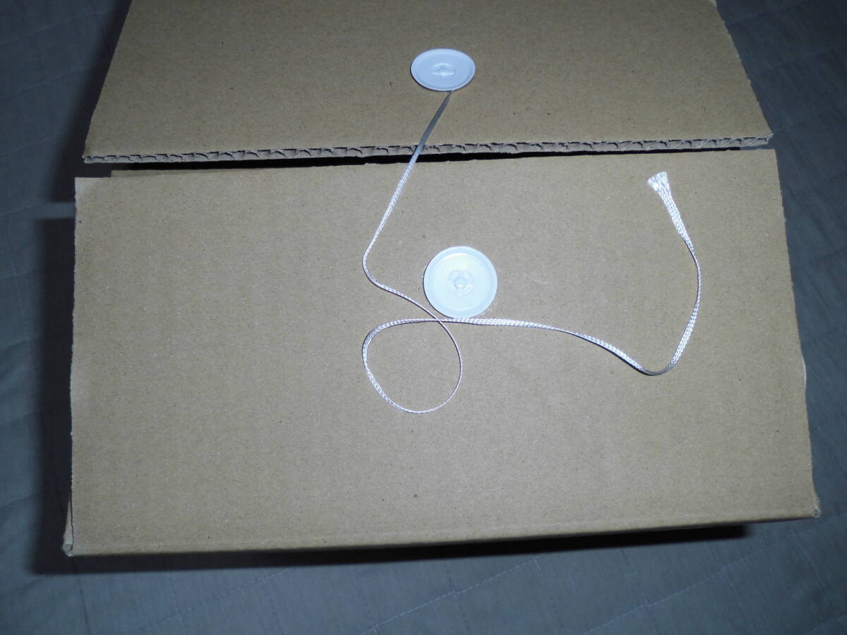 ・紐無しのシールと紐付のシールで一組です。画像の最後の二枚はダンボールに使用した一例です。封筒や紙タトウ箱などにも使用できます。好きな位置に台紙から剥がしたシールを貼って使ってください。(ダンボールは撮影用機材ですので付属しません。)