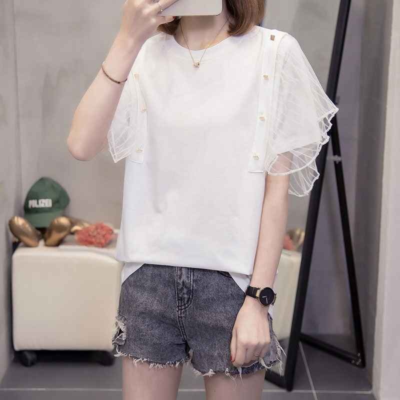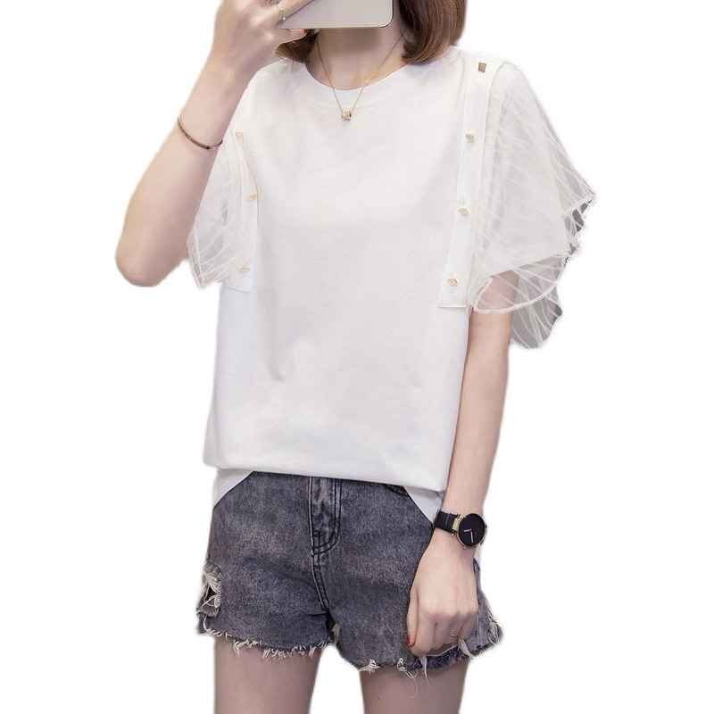 全2色 半袖Tシャツ フリル 切り替え 体型カバー 着痩せ 【大きいサイズあり】 sweet系 3XL ホワイト