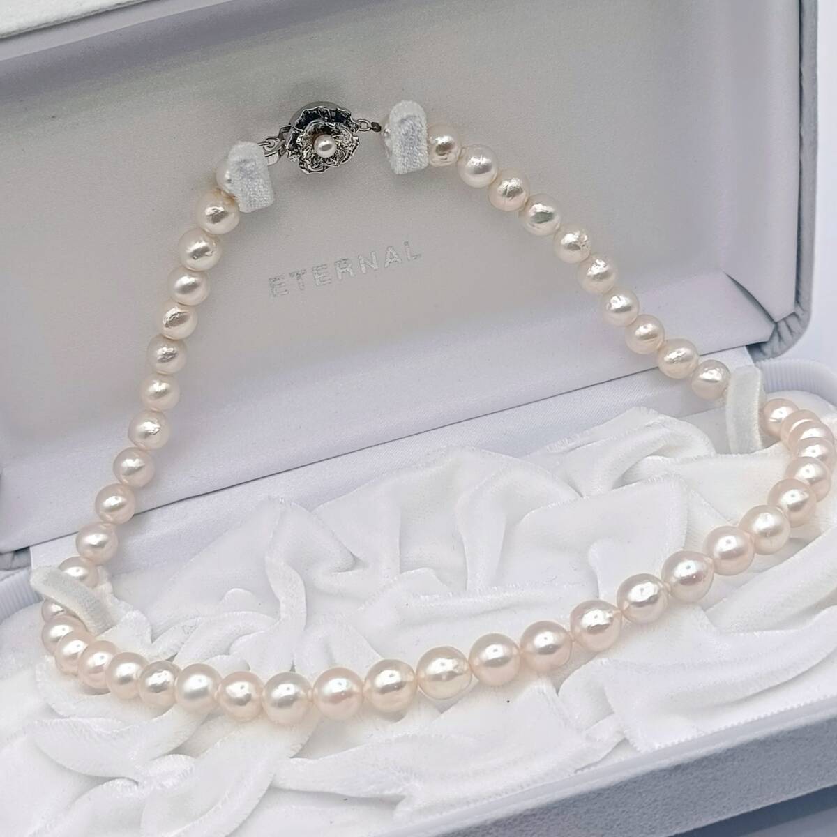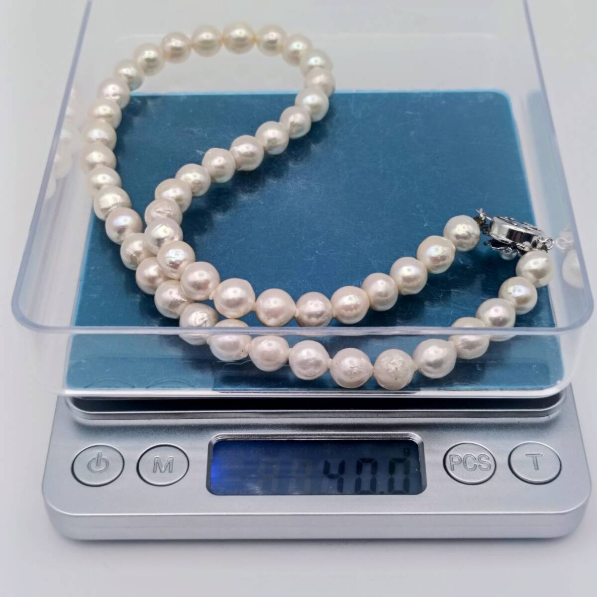 【あこや真珠】7.9-8.2mm 40.0g 43cm 本真珠 アコヤ ネックレス パール SILVER刻印 照り〇 干渉色◎ akoya pearl jewelry neclace