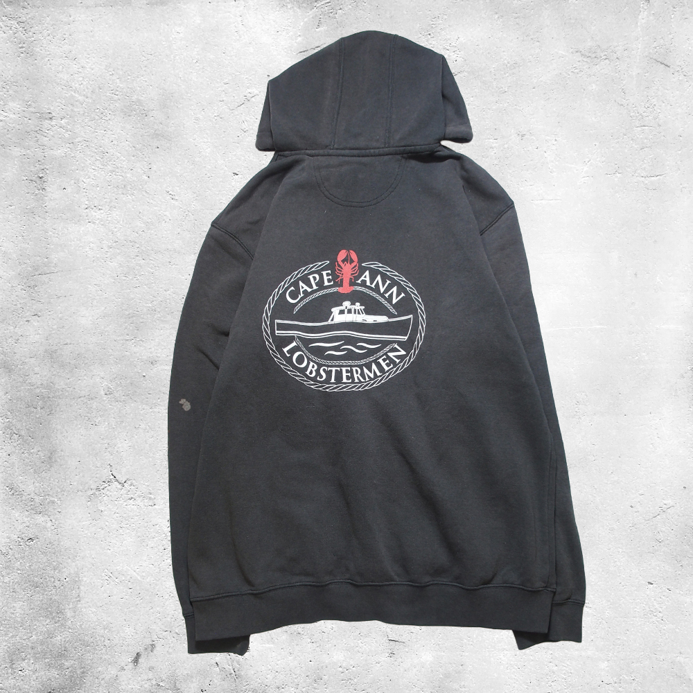 フロントにはカンガルーポケットとブランドタグ、胸元にはユニークなロブスターのプリントがアクセント。