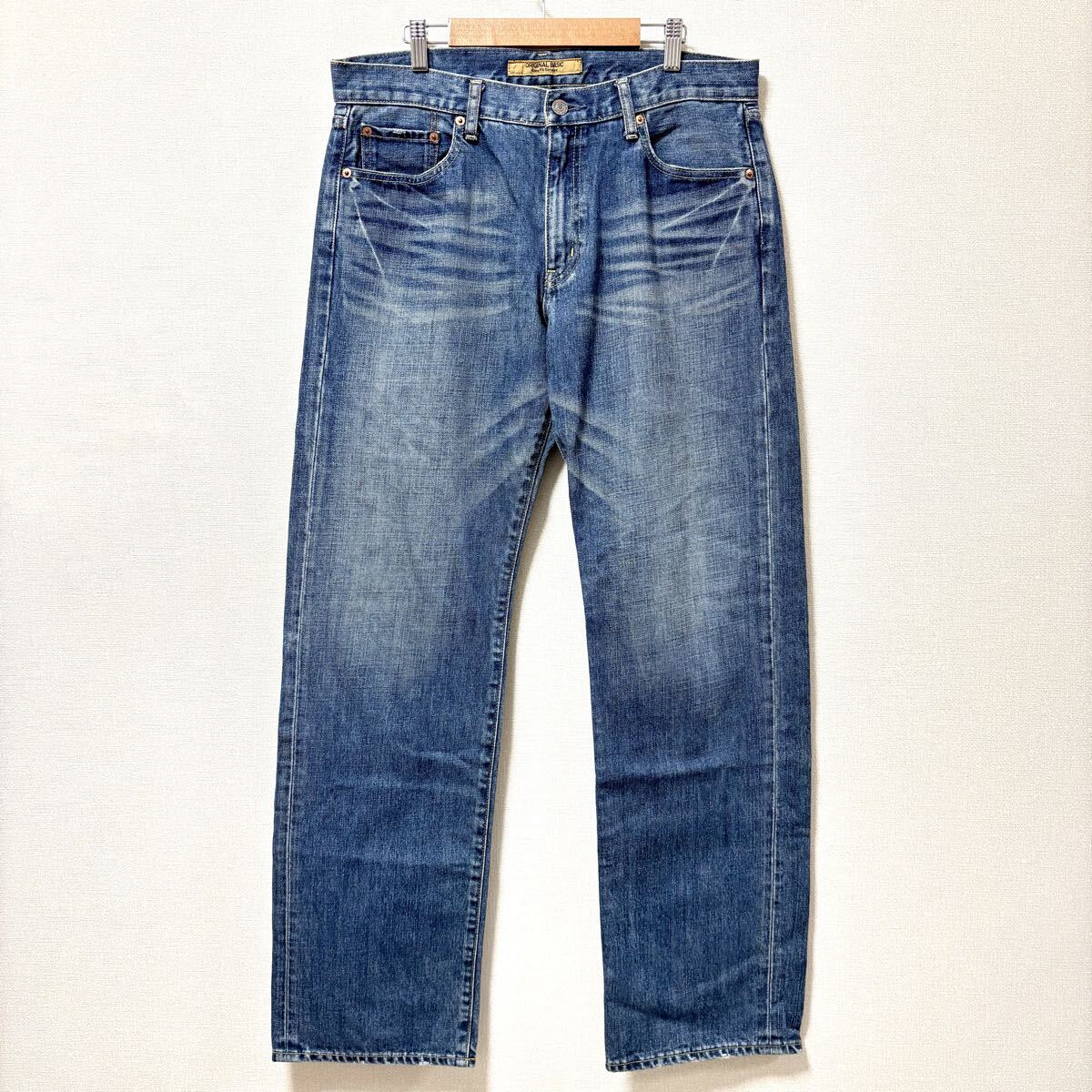 ユニクロのデニムパンツです。コットン100%素材で仕立てられた本格ストレートジーンズになります!ベーシックで流行に左右されにくいデザインなので長くご愛用いただけるアイテムです◎目立つキズやヨゴレなどもないのでまだまだお使いいただけると思います^ ^