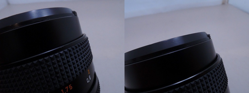 レンズ:レンズ内にチリ、小カビの混入、光を当てるとクモリ、後玉付近にキズが見られます。