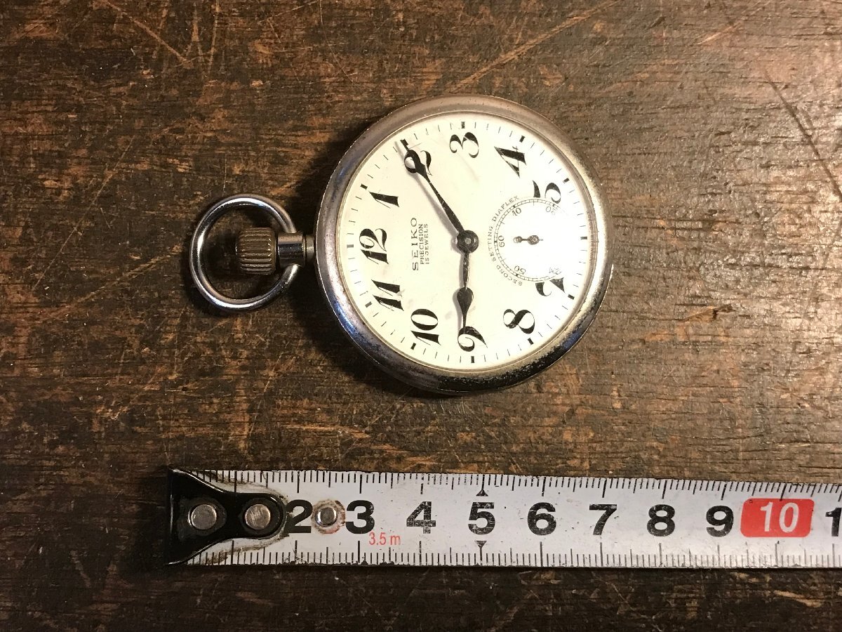 ●ゼンマイが巻ききっていますが動作しませんでした。ジャンク品になります。風防に傷があります。裏蓋が固く開けることができませんでした。