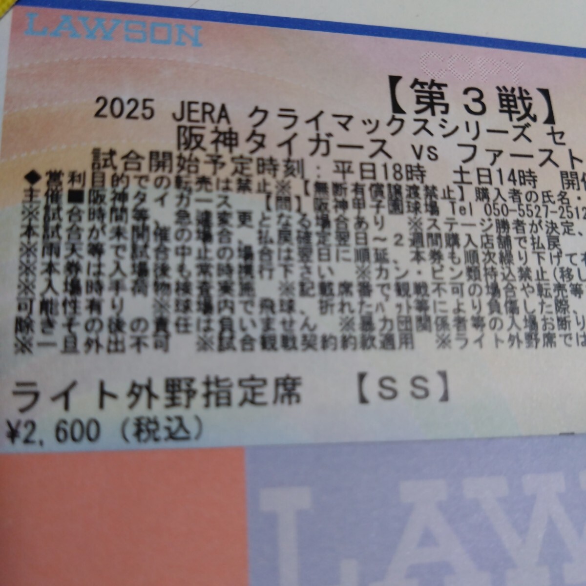 第3戦 10/17(金)予定 ライト外野指定席 1枚 阪神甲子園球場 クライマックスシリーズ 阪神タイガース