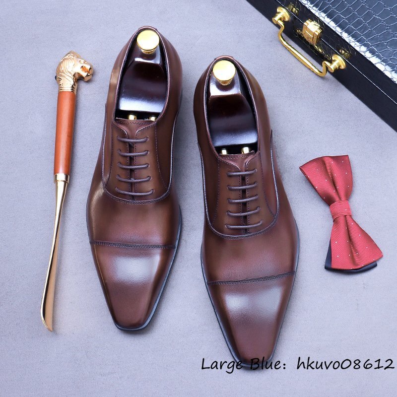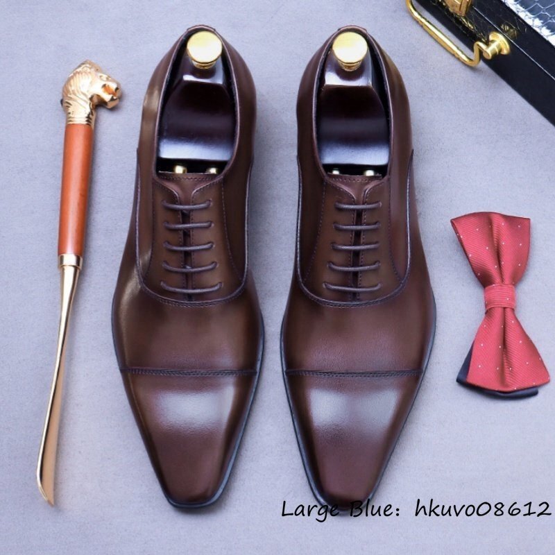 定価10万■最高級 メンズ レザーシューズ 本革 イギリス風 ビジネスシューズ 職人手作り 上級牛革 紳士靴 革靴 フォーマル ブラウン 24.5cm