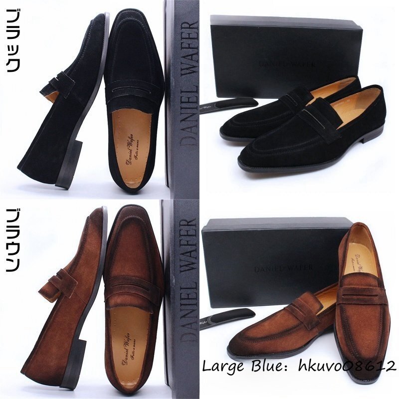 超希少■ビジネスシューズ 本革 メンズ ローファー 職人手作り スエード革 レザーシューズ スリッポン 牛革 革靴 紳士靴 ブラック 24.5cm
