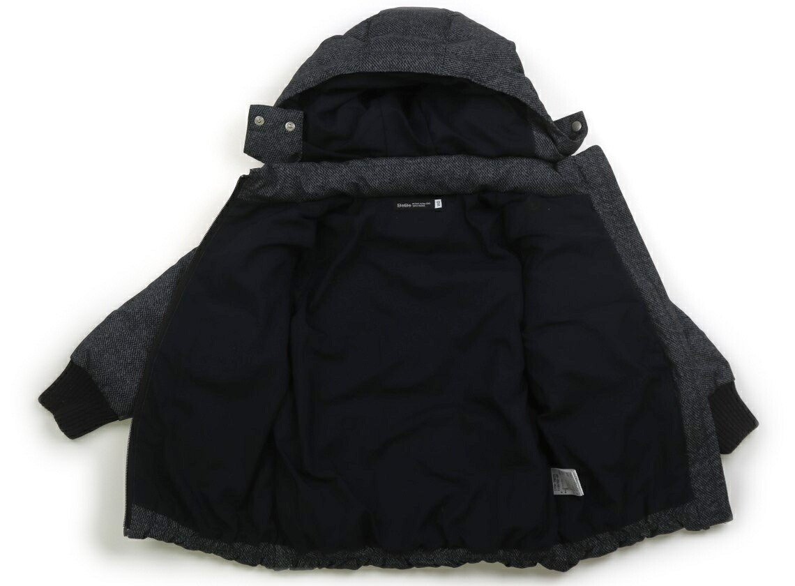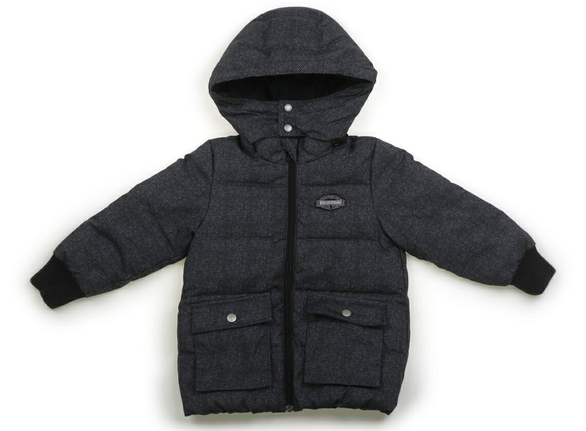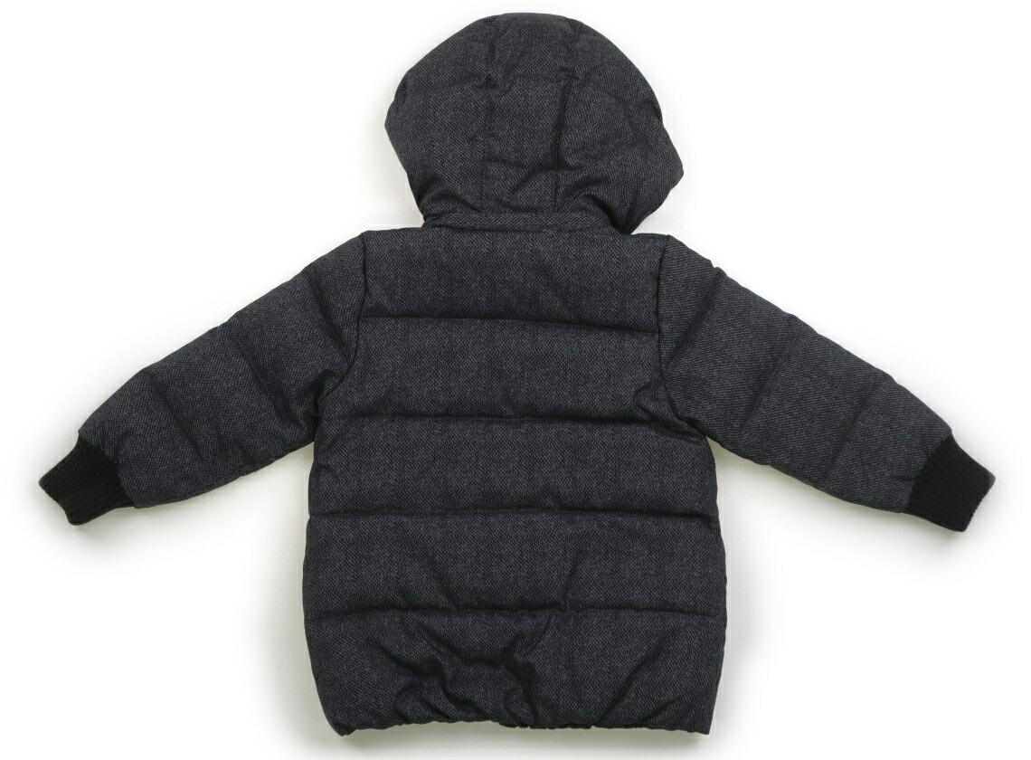 表地と裏地はポリエステル。詰め物はダウンフェザーです。フードの取り外しが可能。袖リブに色褪せによる変色あり。衿の内側に汚れが見られます。
