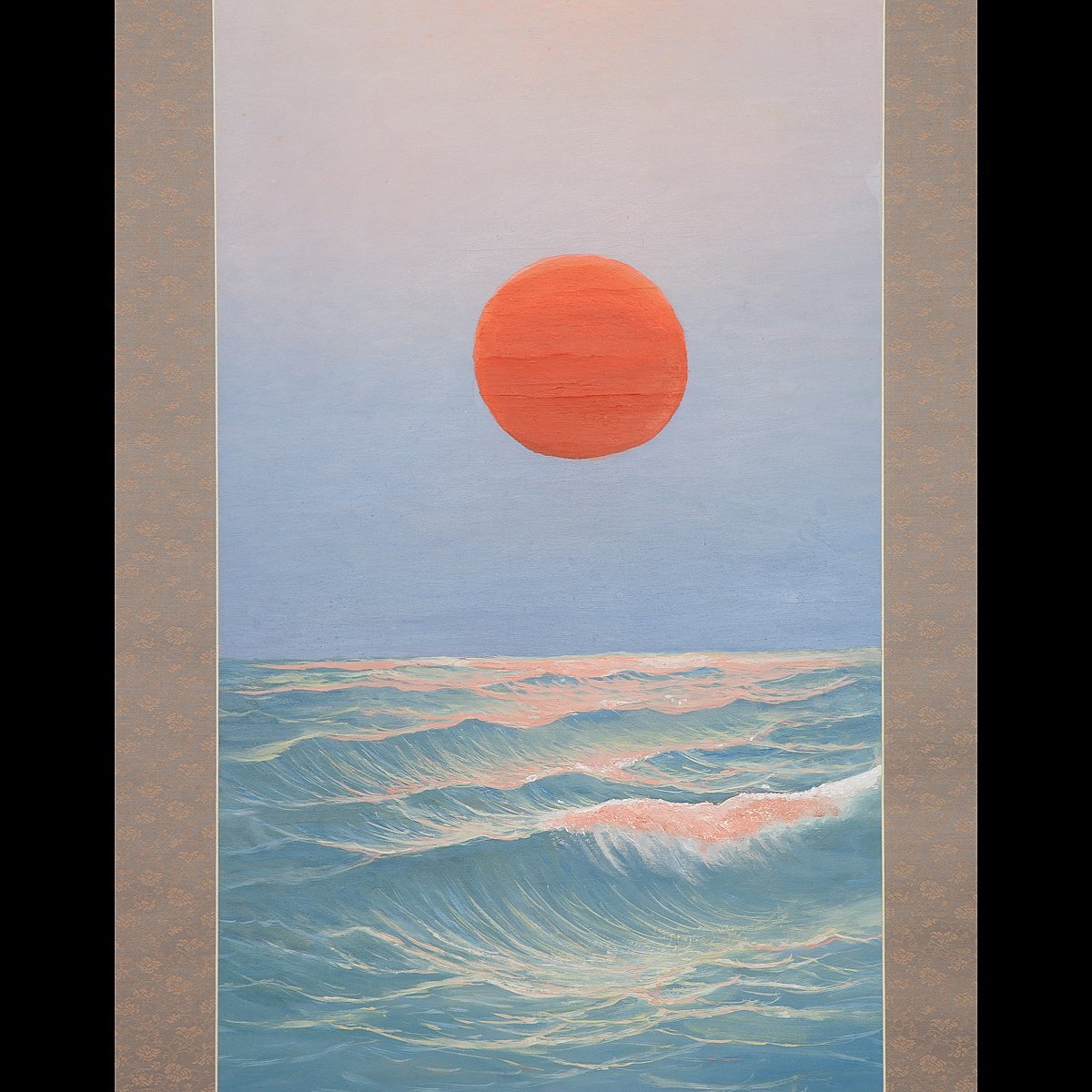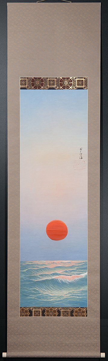 品名 司馬江漢 『旭日碧波』 絹本 油彩 蝋画 掛軸 模写