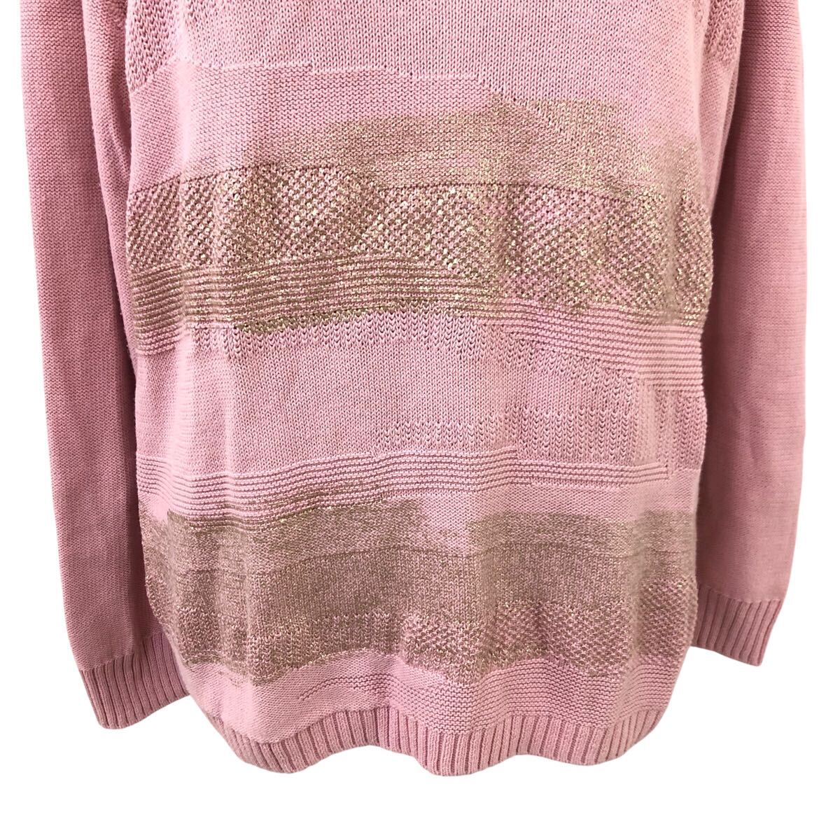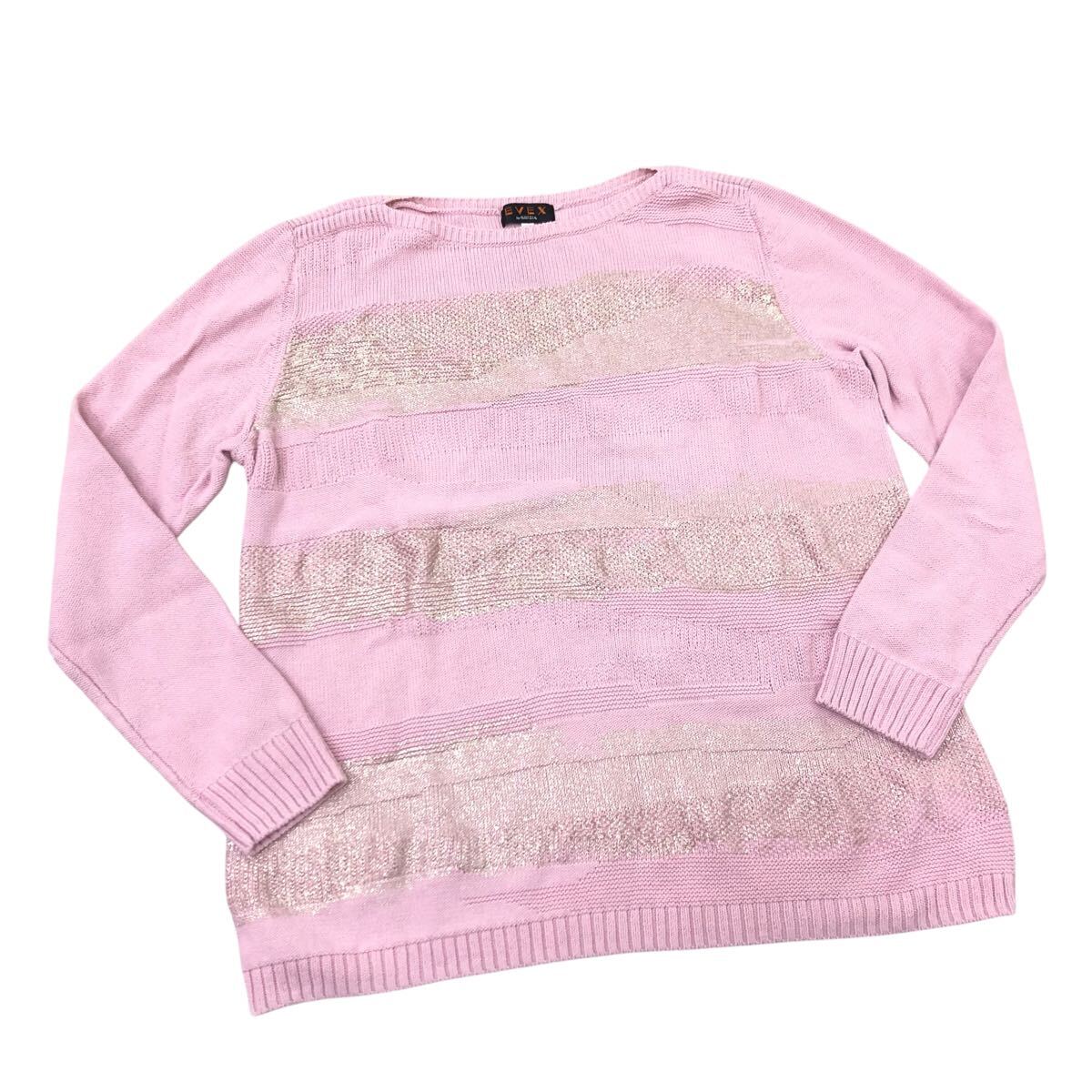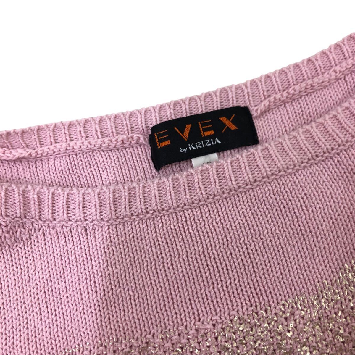 10Nm330-88 EVEX by KRIZIA エヴェックス バイ クリツィア 箔プリント ボーダー 柄 長袖 ニット セーター トップス ピンク レディース 40