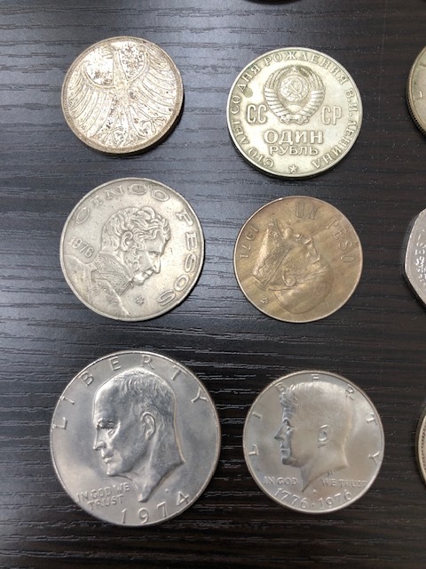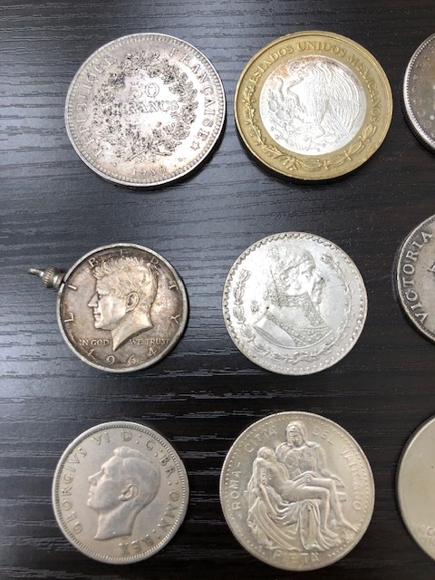 外国古銭 外国銀貨 アメリカ フランス アジア ヨーロッパ ソ連 中国 ハーフダラー ケネディ リバティ 他 海外 コイン いろいろ 総重量約545g おまとめ