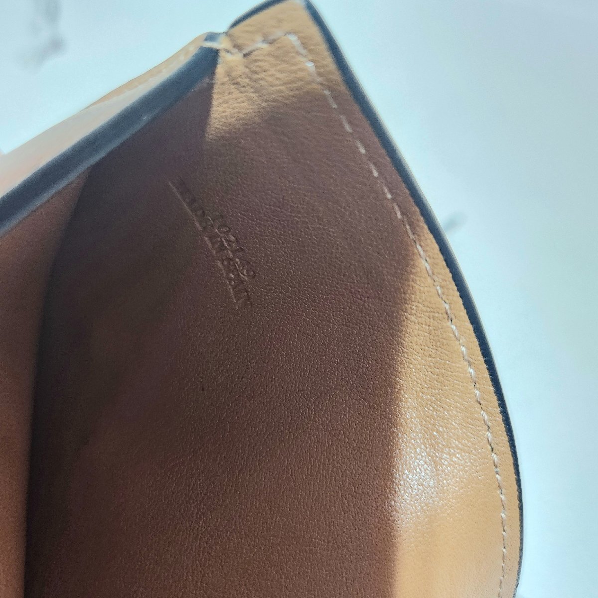 商品説明 ソフトグレインレザーを使用したコンパクトウォレット。 シボレザーとスムースレザーを組み合わせたデザインはシンプルでありながら表情豊かな印象。 フロントのストラップにはアナグラムロゴをエンボス。 上品な雰囲気が魅力のひと品。 詳細 ●サイズ:高さ10cm、幅11cm、マチ3cm ●ランク:Bランク ●コンディション:ベルトに留めボタンの跡があります。 コインケースに少しの汚れがあります。 |