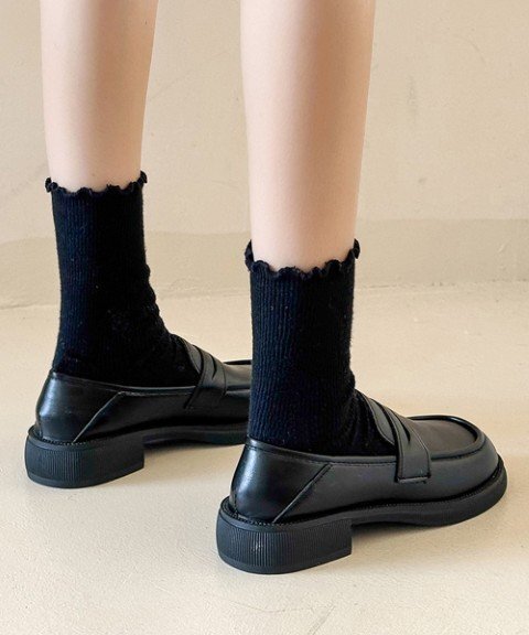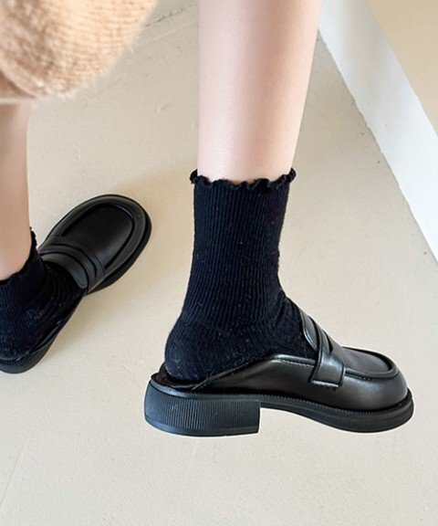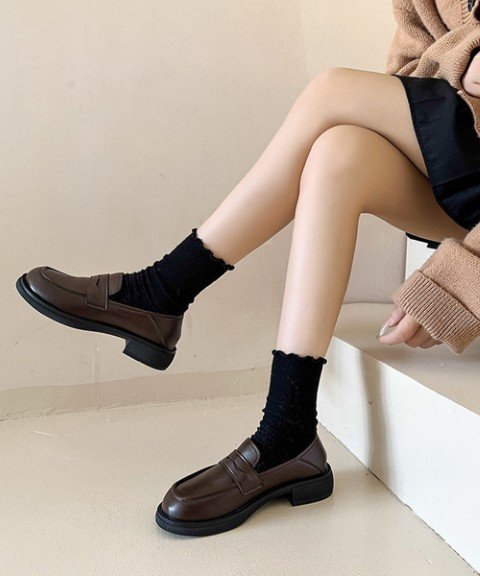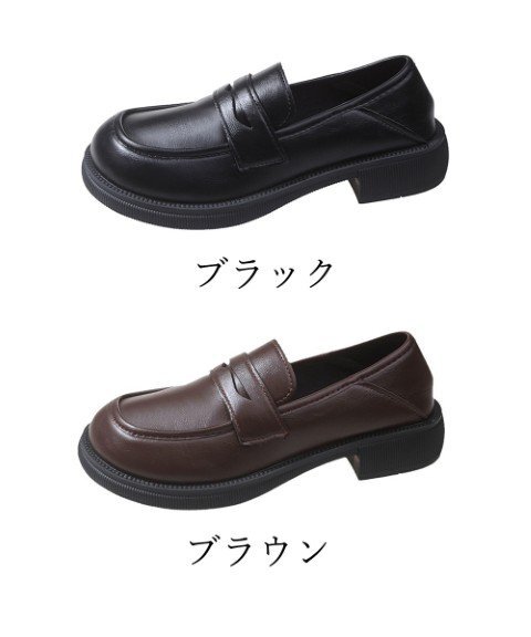 ローファーパンプス 学院風シューズ 太ヒールシューズ