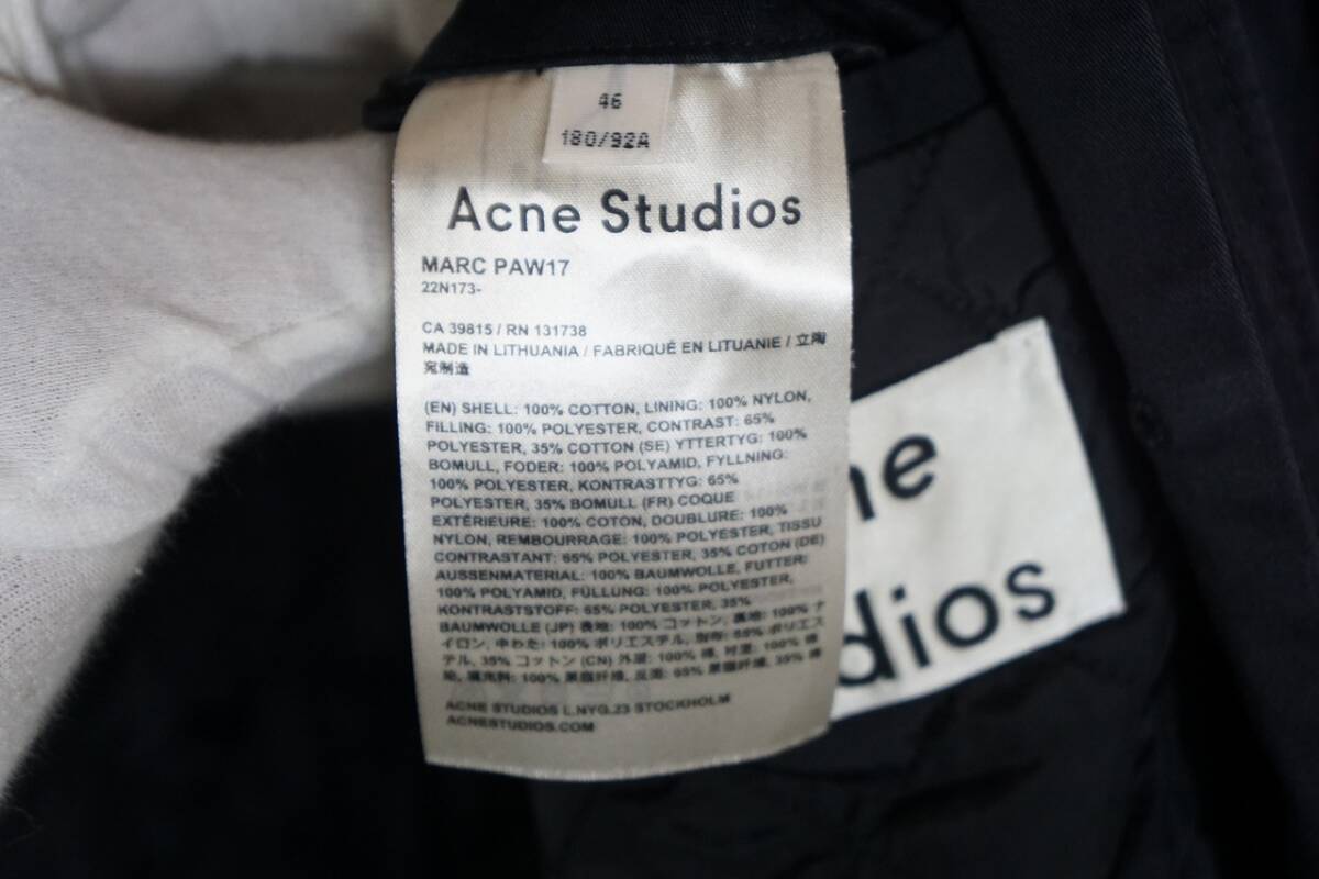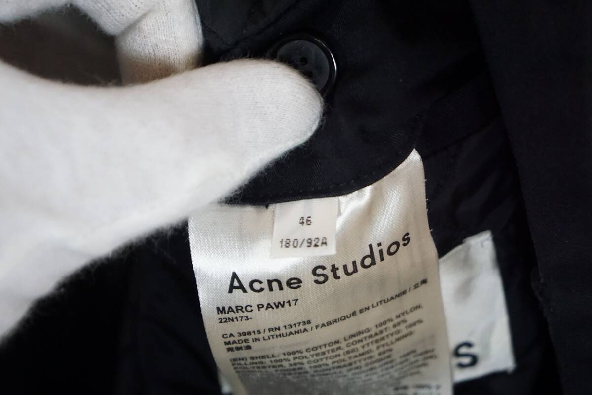 Acne Studios アクネ ストゥディオズ キルティング ステンカラー コート ロング丈 比翼 ジッパー MARC PAW17 22N173- 紺 サイズ 46です。