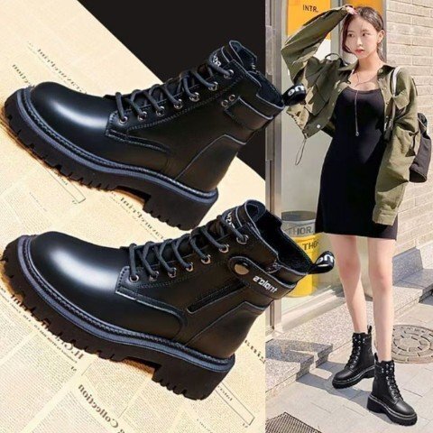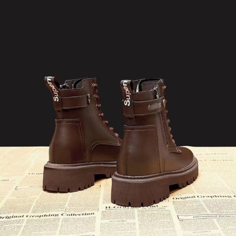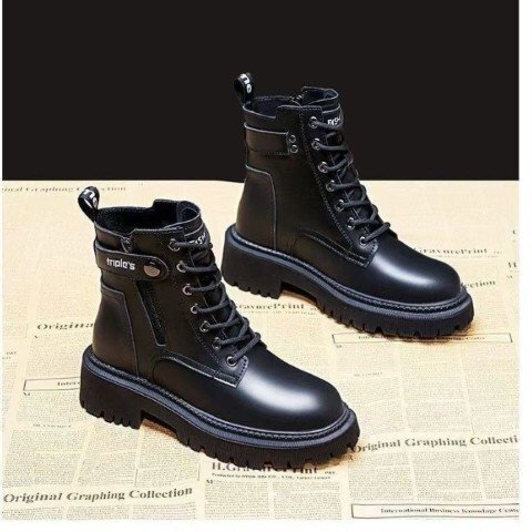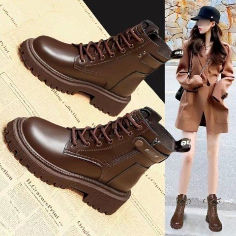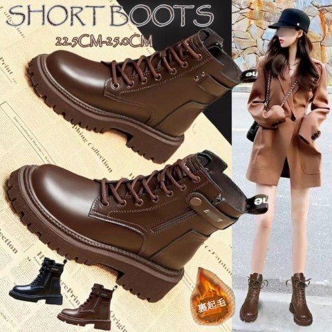 ・編み上げデザインがカジュアルコーデにぴったりショートブーツ。