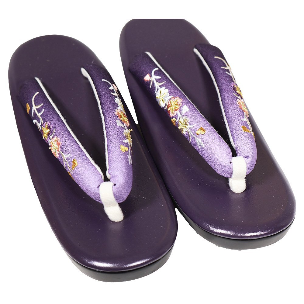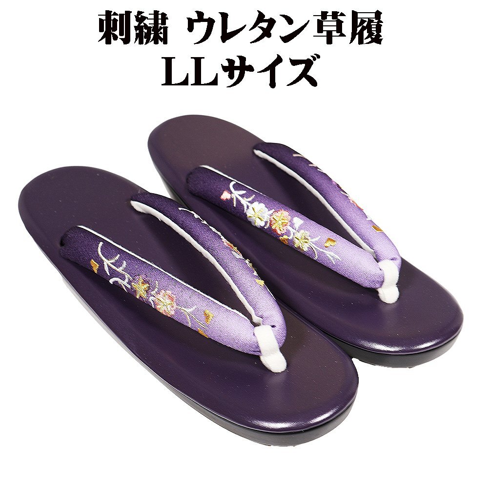 婦人用 ウレタン草履 LLサイズ 紫暈し色地 刺繍 花柄鼻緒 紫色台 ウレタンソール ※お使いのディスプレイの種類や設定の差により 実物の色と画像の色が少々異なることもございます。 |