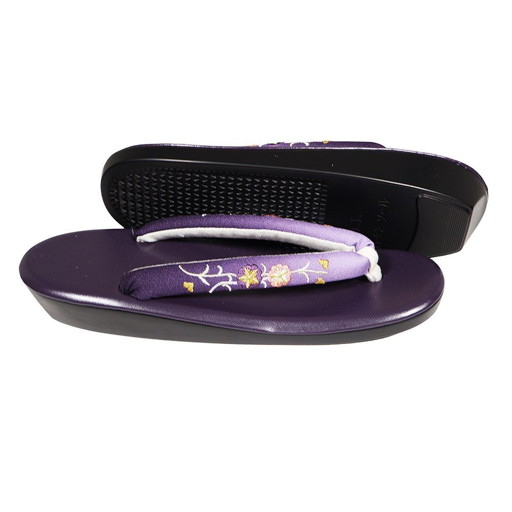 | 商品 | 婦人用 ウレタン草履 LLサイズ 紫暈し色地 刺繍 花柄鼻緒 紫色台 ウレタンソール 新品 |