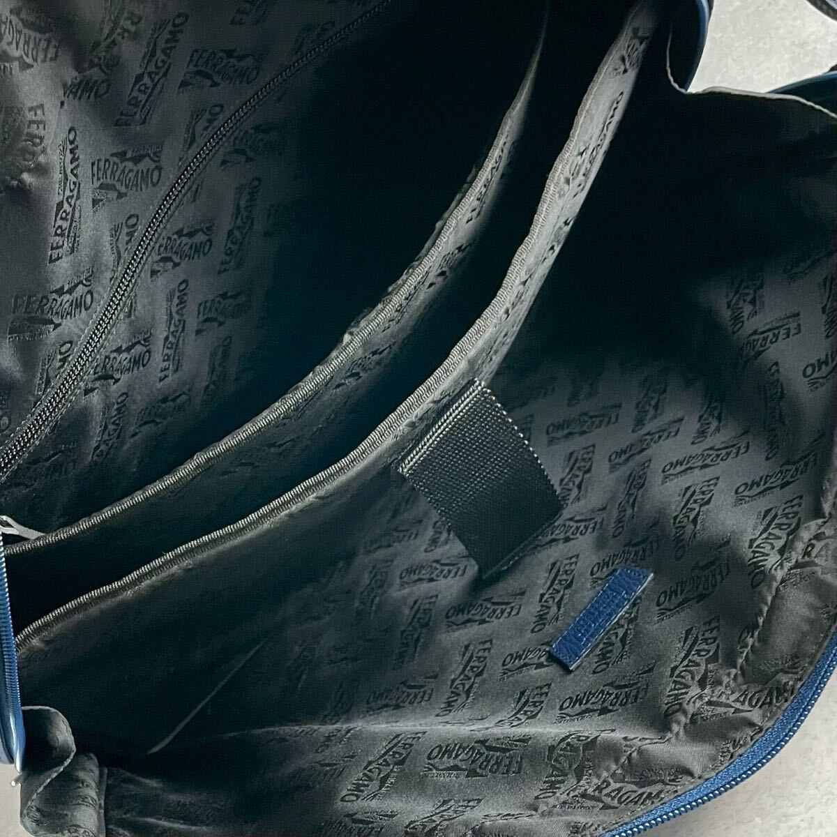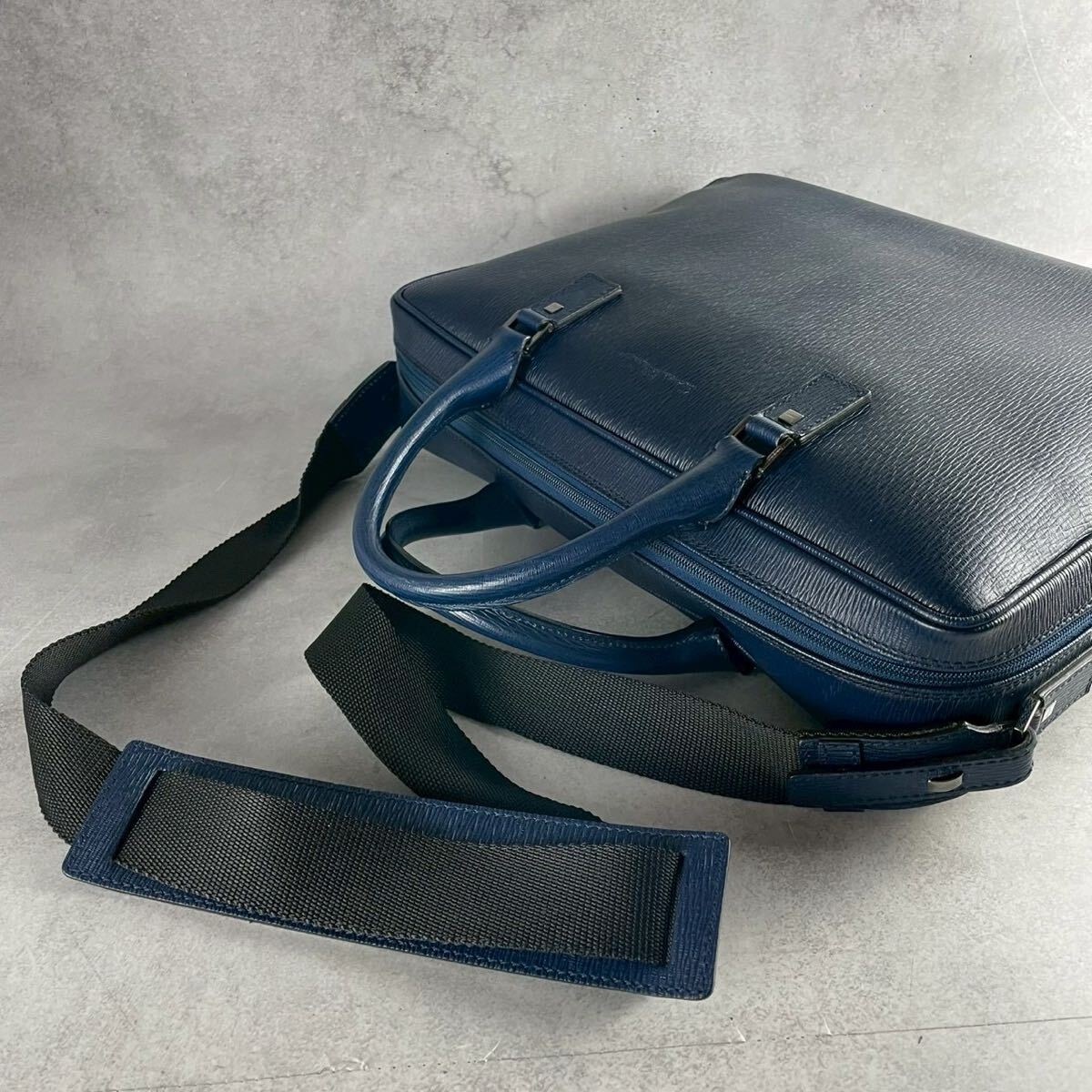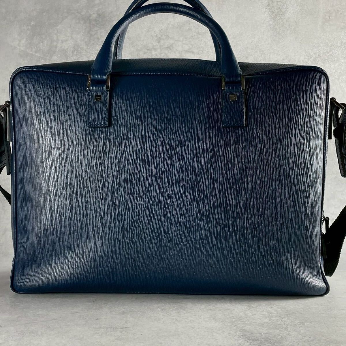【美品】Salvatore Ferragamo フェラガモ 2way トート バッグ ショルダー ハンド メンズ ビジネス ロゴ レザー 本革 紺色 A4/PC◎ 大容量