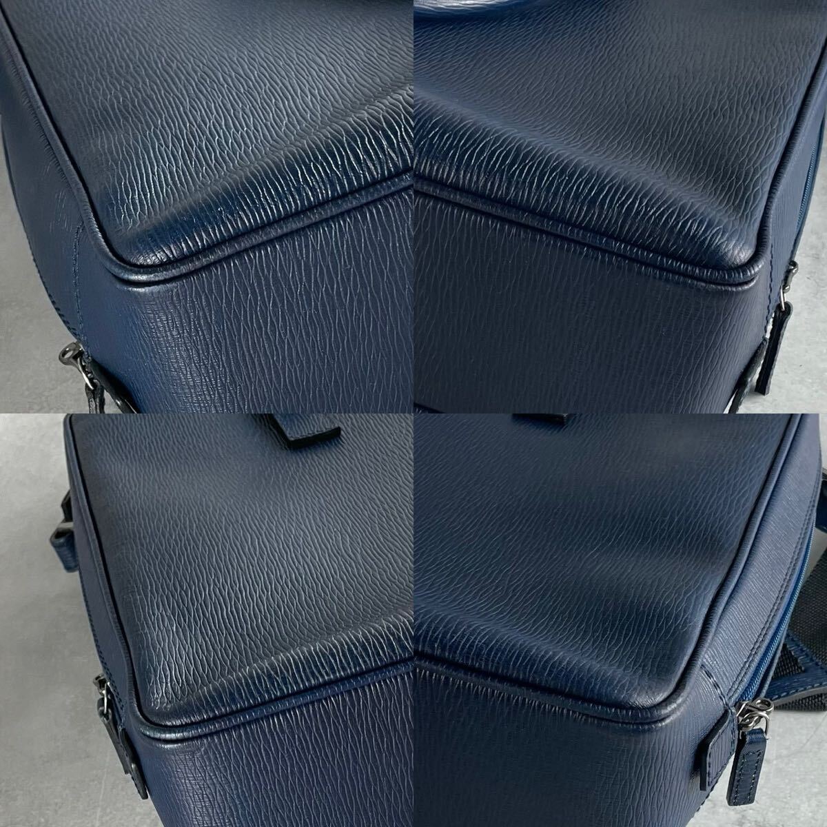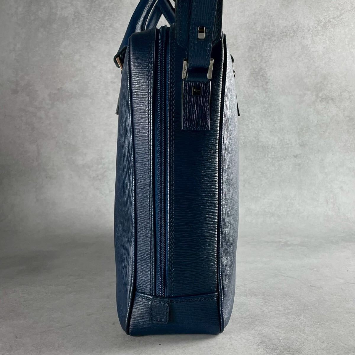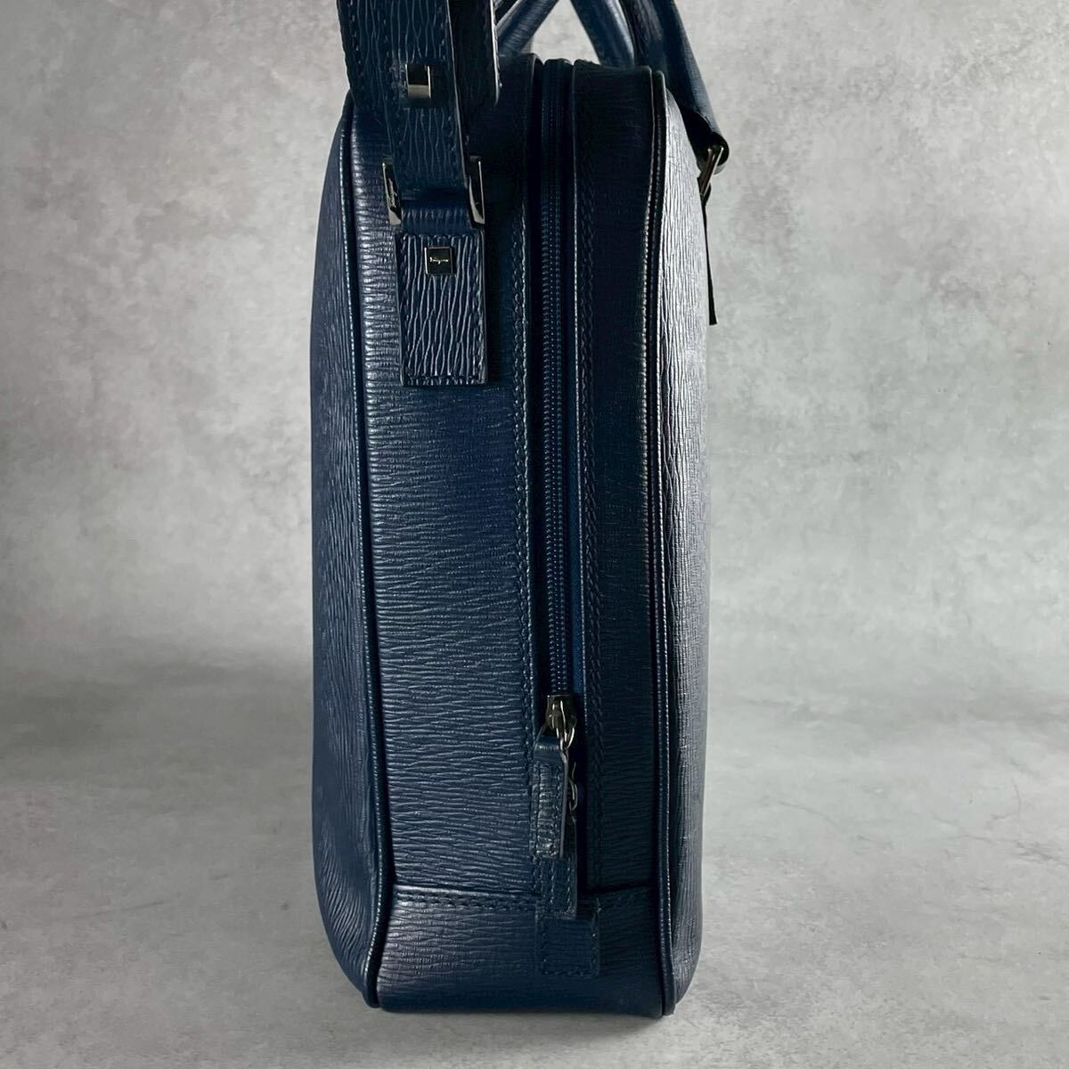 【美品】Salvatore Ferragamo フェラガモ 2way トート バッグ ショルダー ハンド メンズ ビジネス ロゴ レザー 本革 紺色 A4/PC◎ 大容量