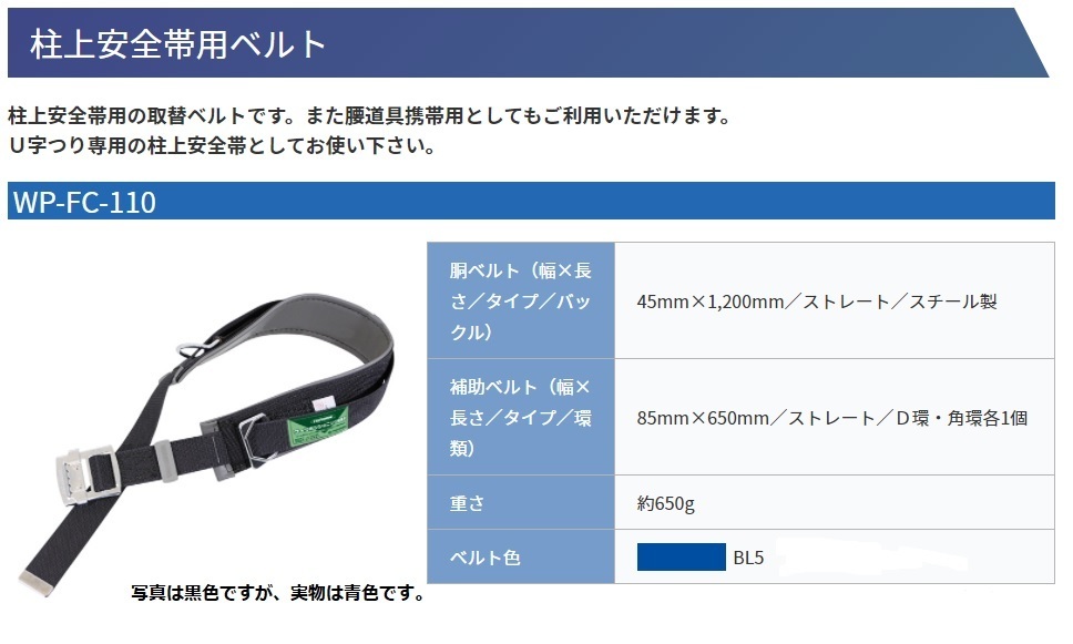 ※藤井電工 ツヨロン 柱上安全帯 WP-FC-110 ベルトのみ 青色
