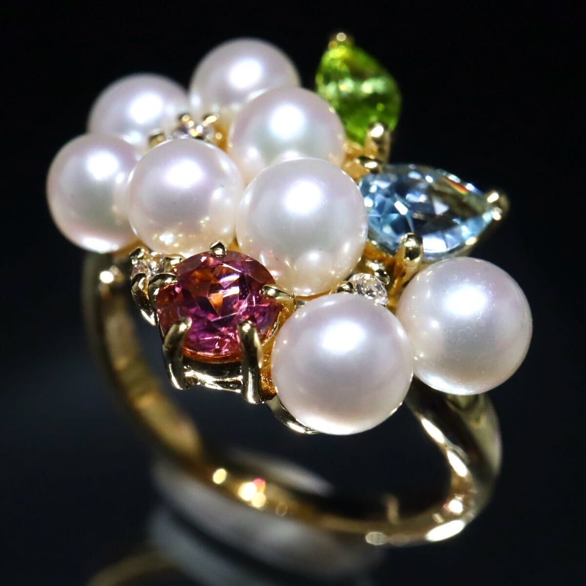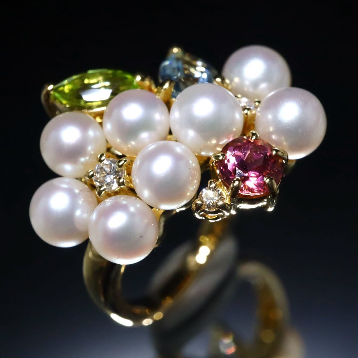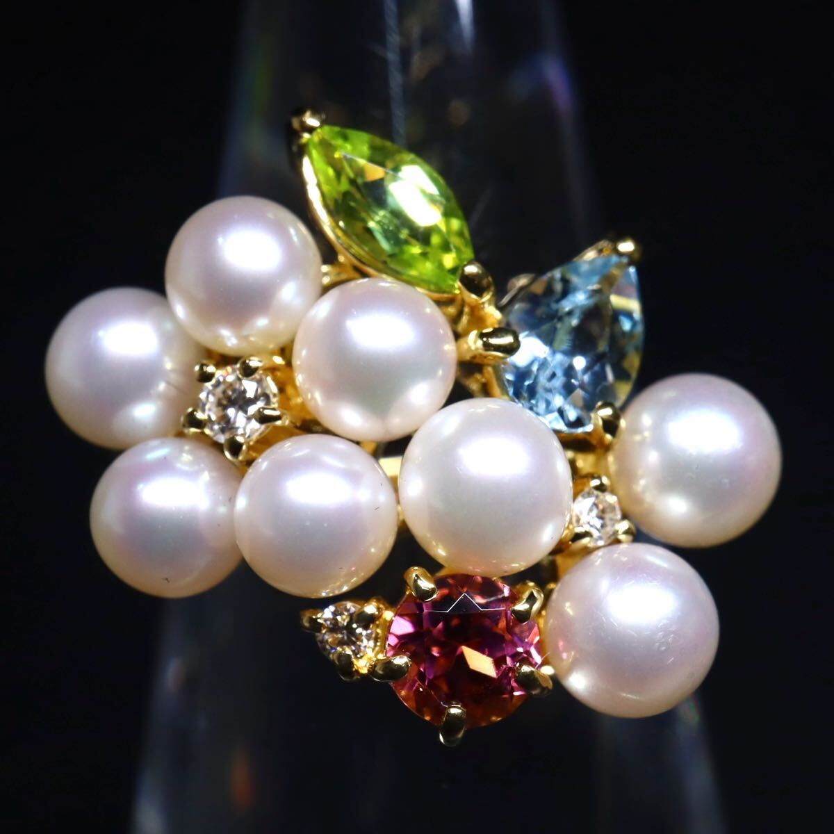 〈天然ダイヤモンド/アコヤ本真珠/マルチカラー天然石リング〉