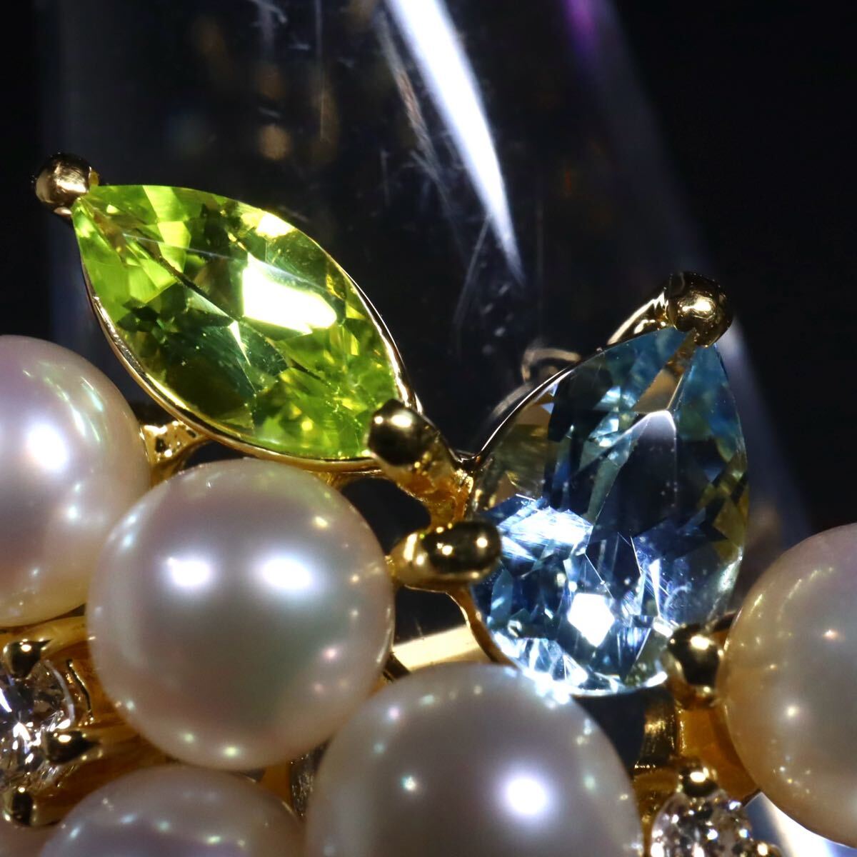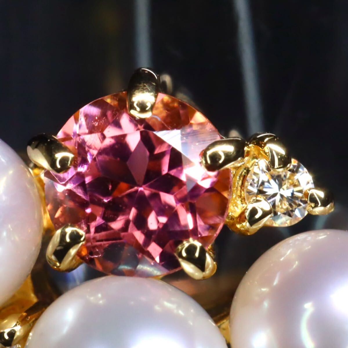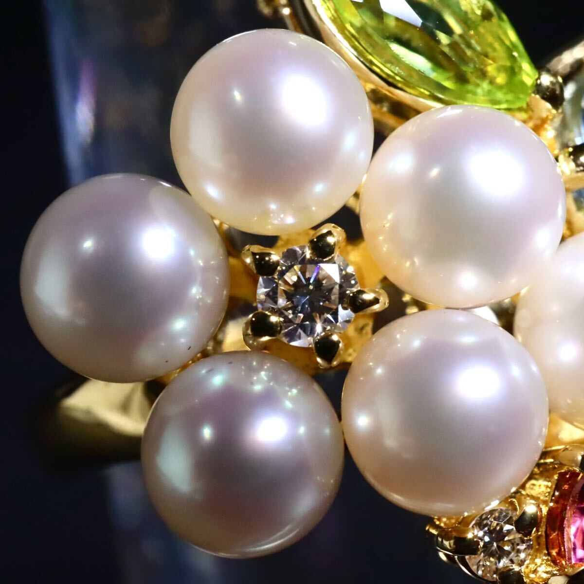 〈天然ダイヤモンド/アコヤ本真珠/マルチカラー天然石リング〉