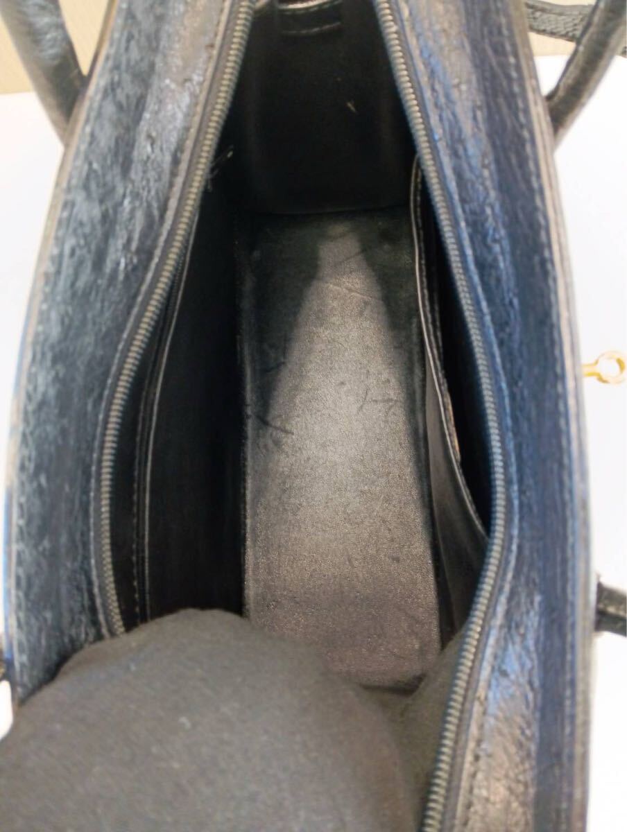 オーストリッチ ゴールド金具付き ハンドバッグ 黒ブラック 手提げ バッグかばん 保存袋付き 現状品