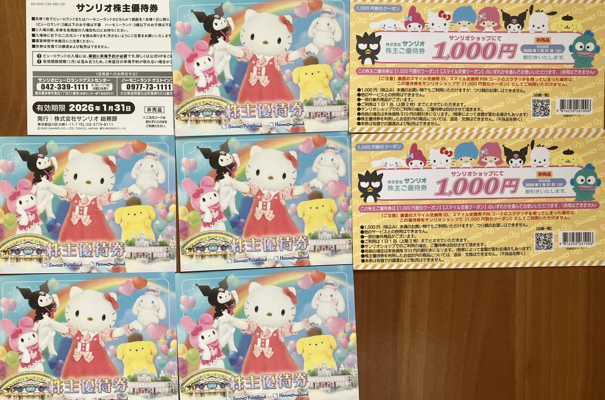 【送料無料】サンリオ株主優待券6枚+割引券2枚 有効期限: 2026年1月31日まで