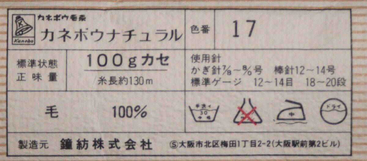 ★毛糸 カネボウ ナチュラル 100gカセ 2個 17番 ブラウン茶系 毛100% 経年保管品 現状品★