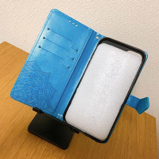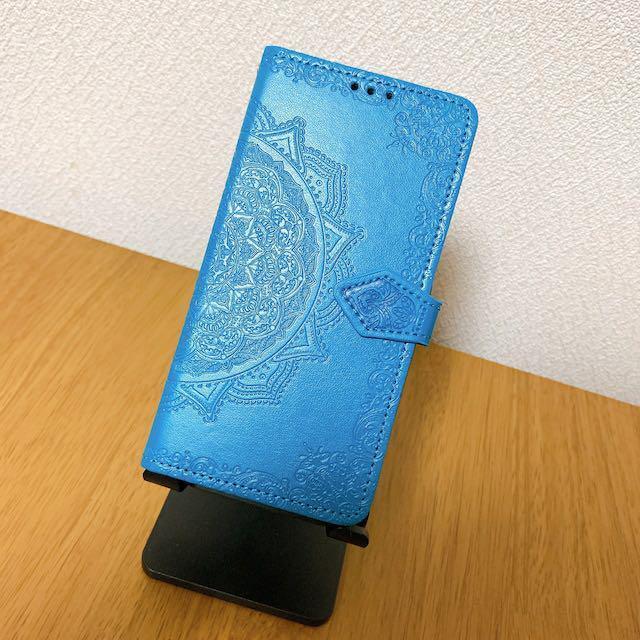 エンボス加工スマホケース 手帳型 iPhone12/12pro ブルー