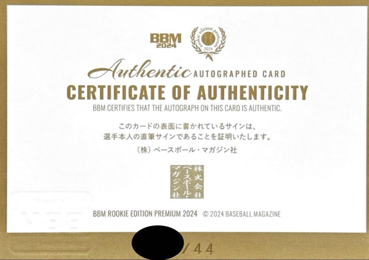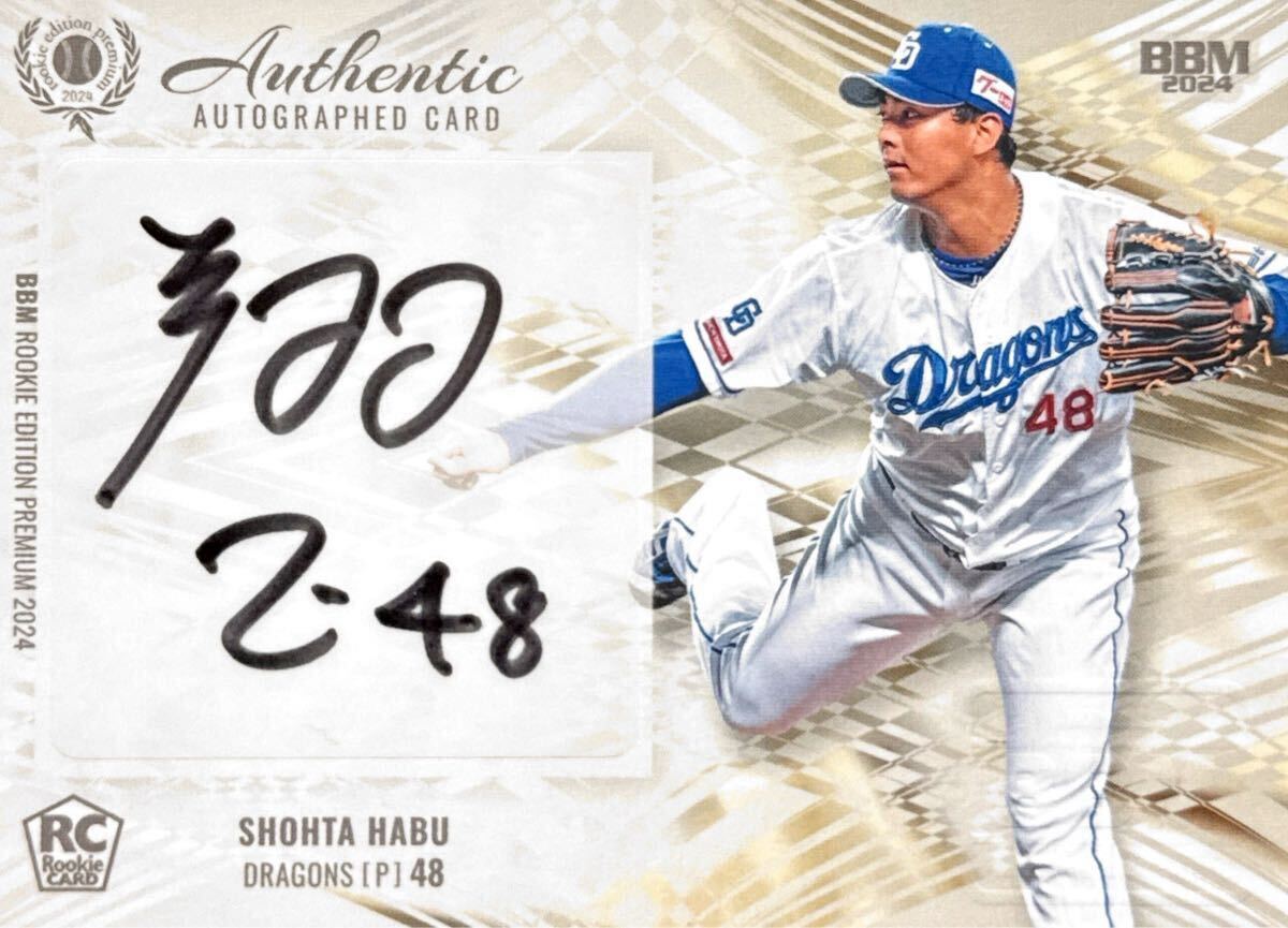 BBM 2024 ルーキーエディションプレミアムに封入された中日 土生翔太選手の直筆サインカードです。44枚限定品です。