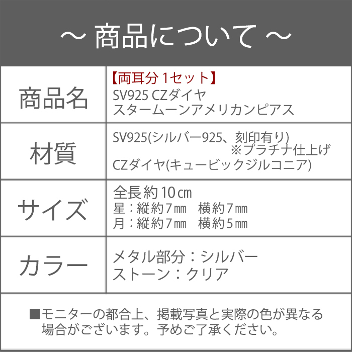 新品/ピアス/アメリカン/星/月/シルバー/レディース/スター/ムーン/ダイヤ/CZ/両耳/ロング/チェーン/プラチナ仕上げ/SV925/プレゼント/女性