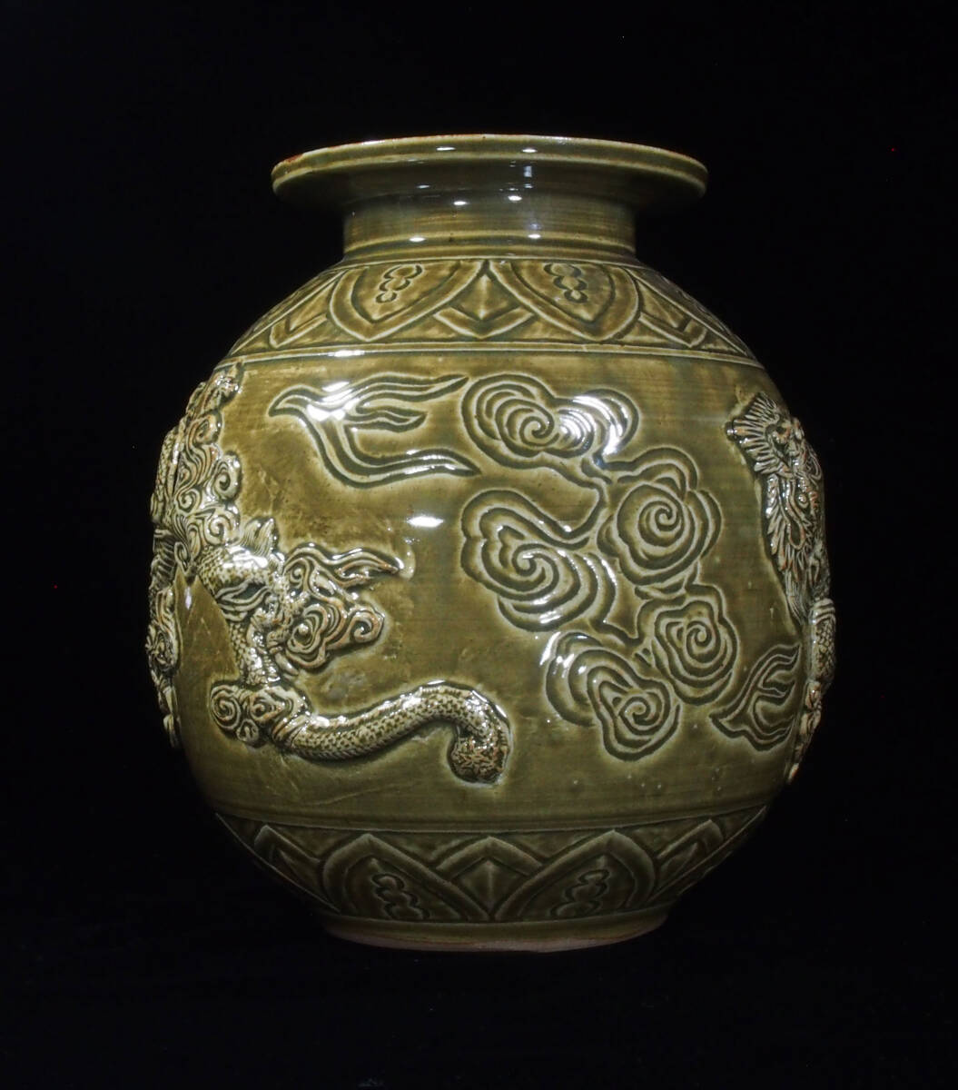青木木米の「龍」の型を用いて、瑞芝焼窯元第六代阪上重次郎先生が再現された大変貴重な花瓶です。
